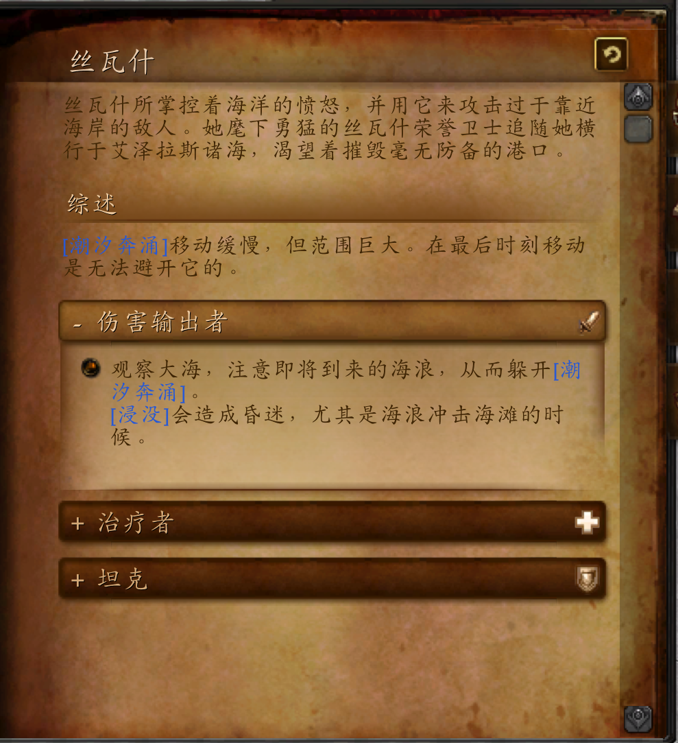 丝瓦什所掌控着海洋的愤怒,并用它来攻击过于靠近海岸的敌人。她麾下勇猛的丝瓦什荣誉卫士追随她横行于艾泽拉斯诸海,渴望着摧毁毫无防备的港口。
