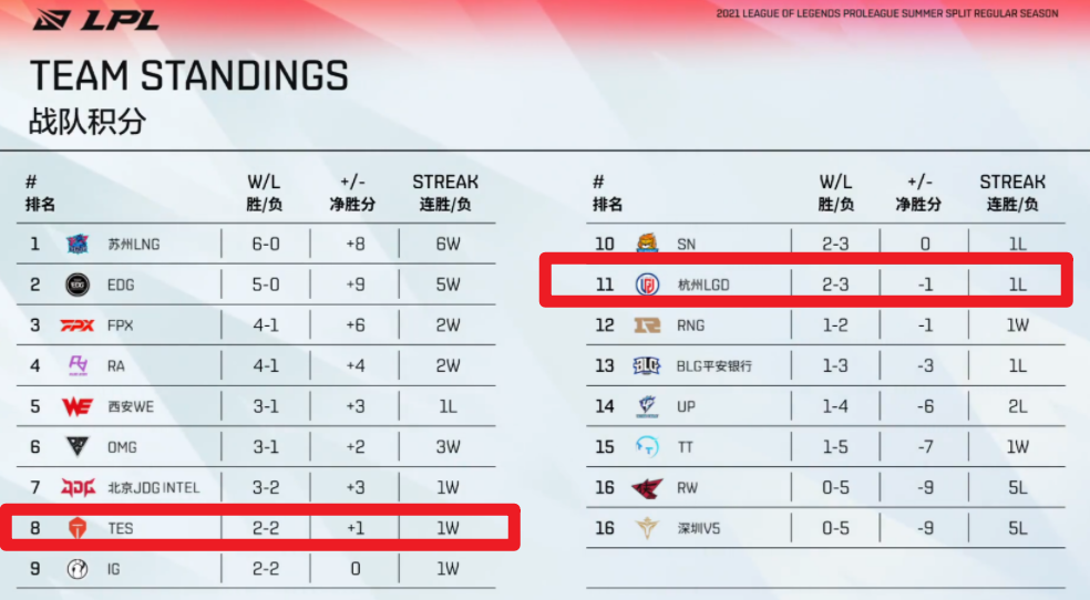 从最近的状态来看,TES和LGD都有冲击季后赛的可能,只是前者相比之前有很大的退步,按理来说TES的阵容足以冲击冠军,但369出问题后TES就变得不像一个团队,经常这里出问题,那里出问题,频繁被“偷家”就是问题所在,这说明他们的运营有很大问题。