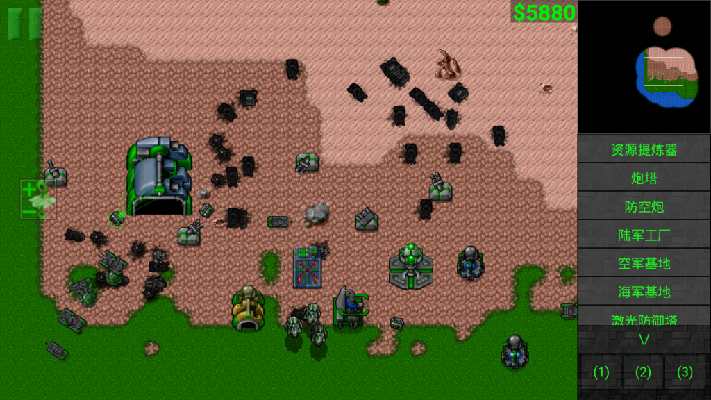 游戏的形式就是攻陷敌方的基地,并保护好自己的基地,游戏中有陆军,空军和海军可以生产,兵种多样,进攻的方式也是多种多样。在你进行游戏过程中你可以点击左边的放缩方框进行局部放大或整体勘察。若你玩的是单人模式,你还可以进行暂停或者保存,以待闲时继续把玩。