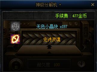 目前普通地下城中产出大量史诗装备,通常情况下每管疲劳能够掉落4-6个史诗装备,词条等级较低的装备可以直接分解,获得的史诗灵魂可以通过NPC商店1:1兑换成灵魂之源。