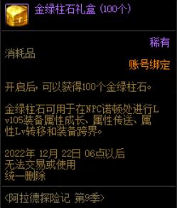 在110级版本中,奥兹玛攻坚战竞拍战利品中增加了[金绿柱石礼盒],打开可随机获得100-200个金绿柱石,竞拍时需要注意性价比,当价格太高时可以适当放弃。