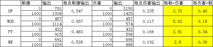 计算的都是129的等级,秒7个单位,都是副选,毕竟更多的关注都是秒满且是副选。从表内可以看出,地府更吃伤害,无底洞更吃敏捷。