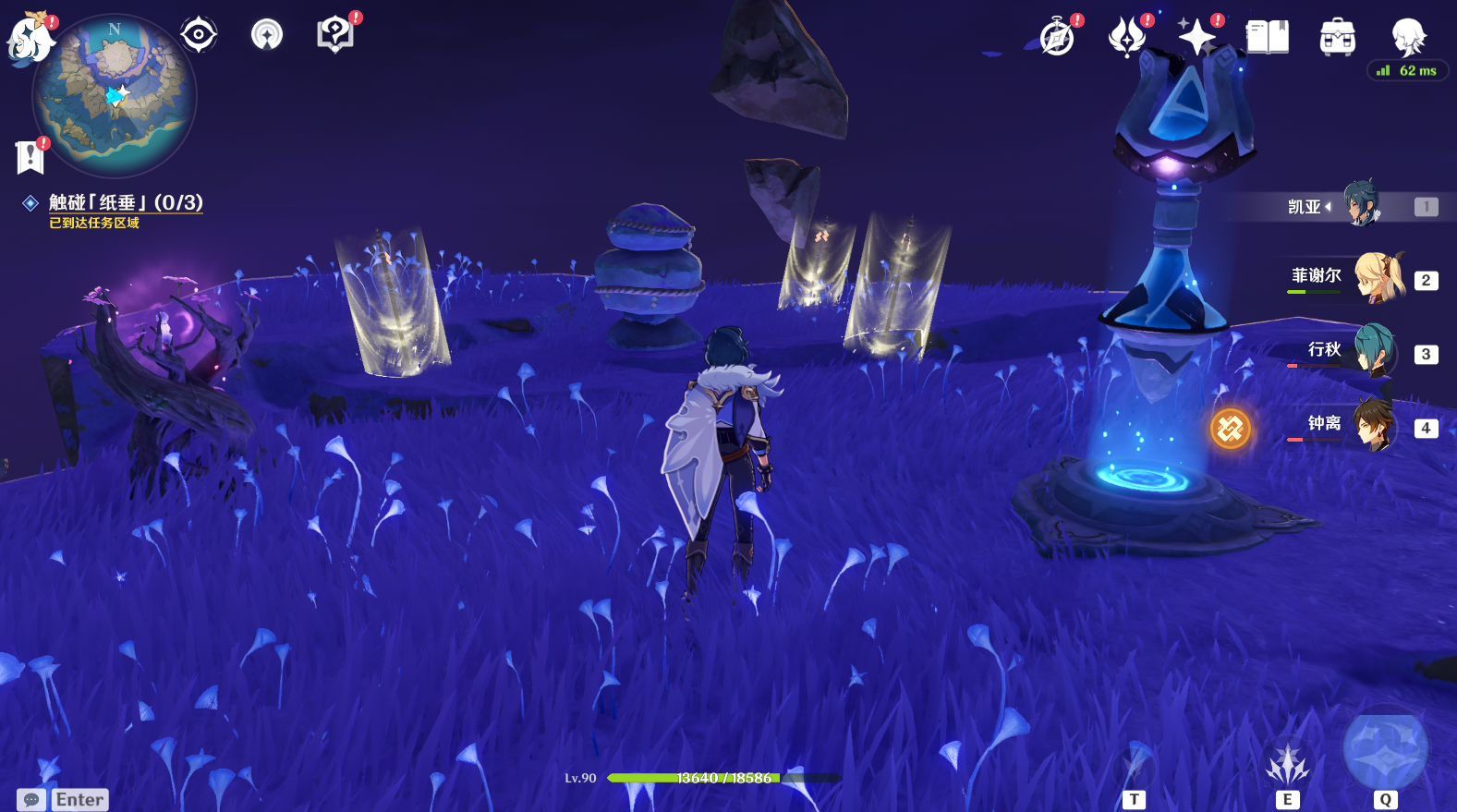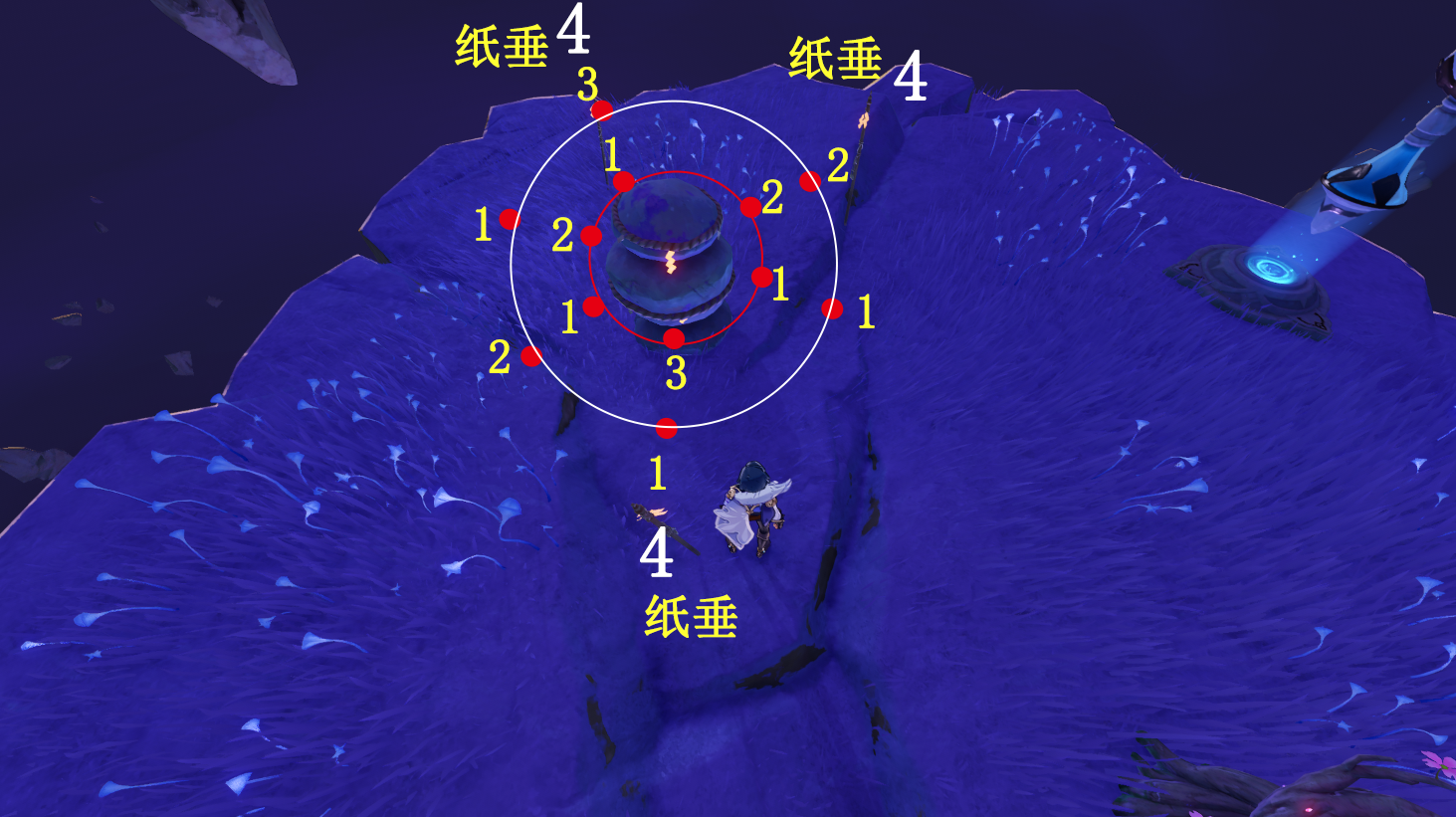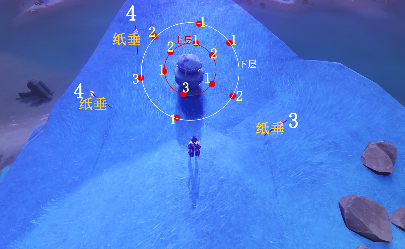 (2)到镇石旁,先开传送锚点,再拿雷种子触摸3个纸垂,