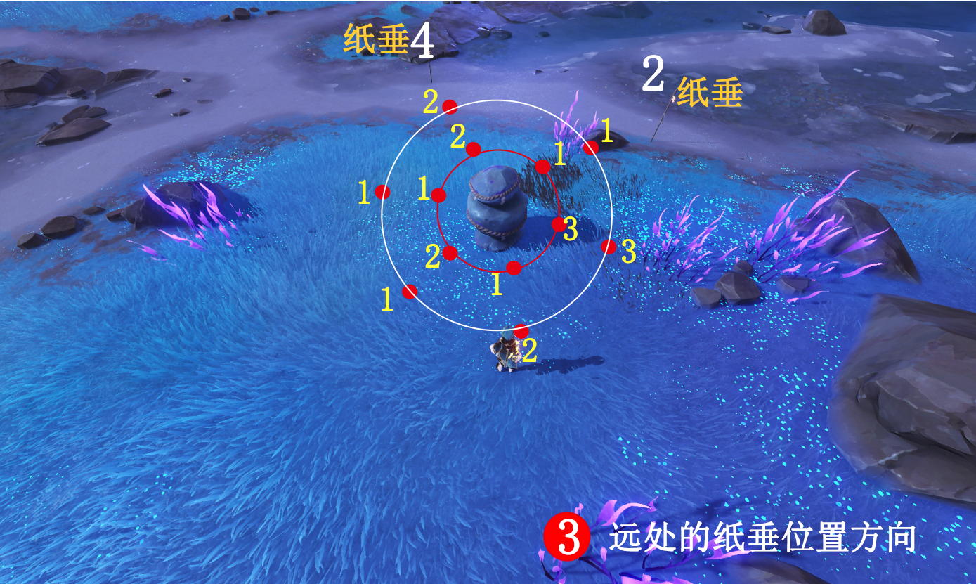 (1)前往封印镇石,打倒所有敌人,触碰三个纸垂,另一个纸垂在旁边小岛上,拿雷种子或进去传送门都可以快速过去,