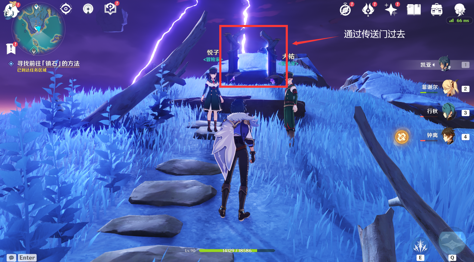 (1)前往「镇石」的所在地,与大祐交谈,寻找前往「镇石」的方法,穿过旁边的相位之门,传送到半空,然后再拿雷种子飞到镇石位置(也就是在传送锚点旁边),
