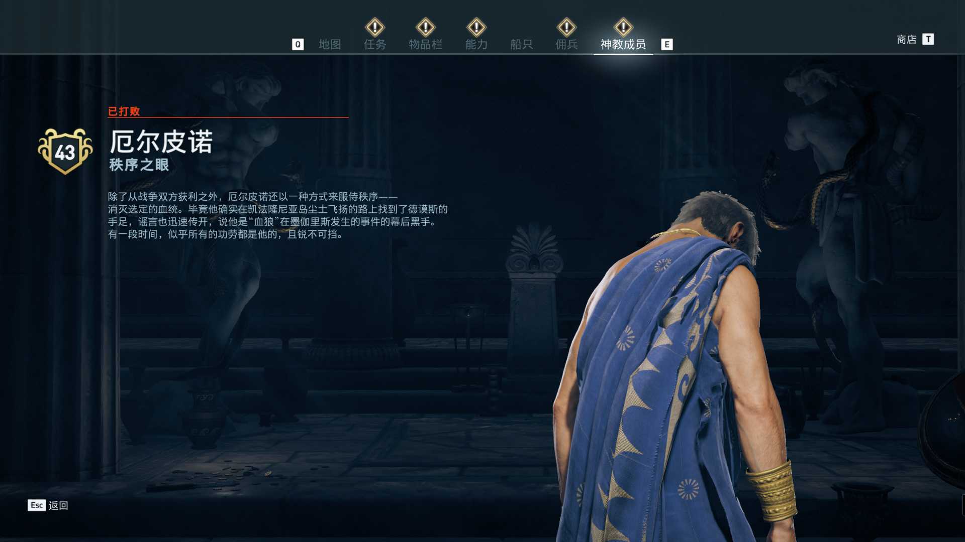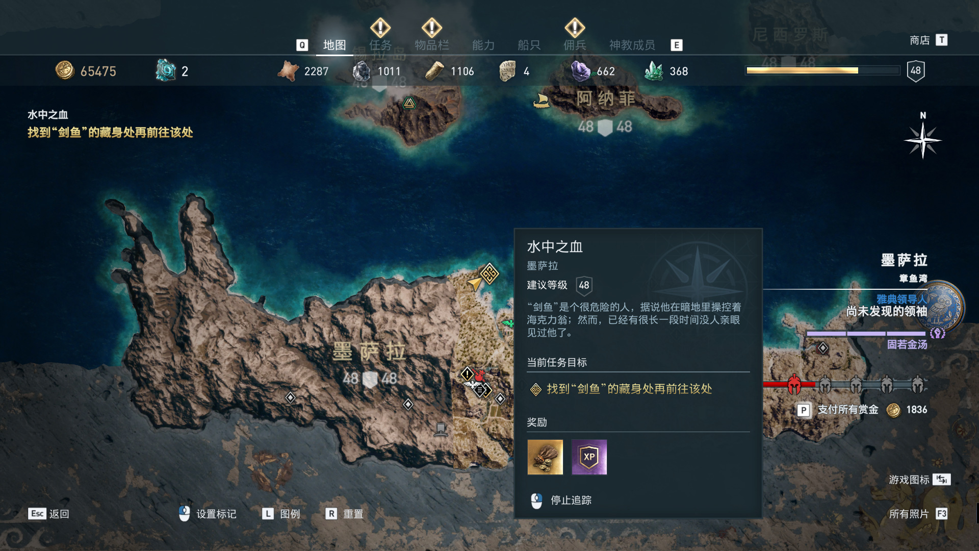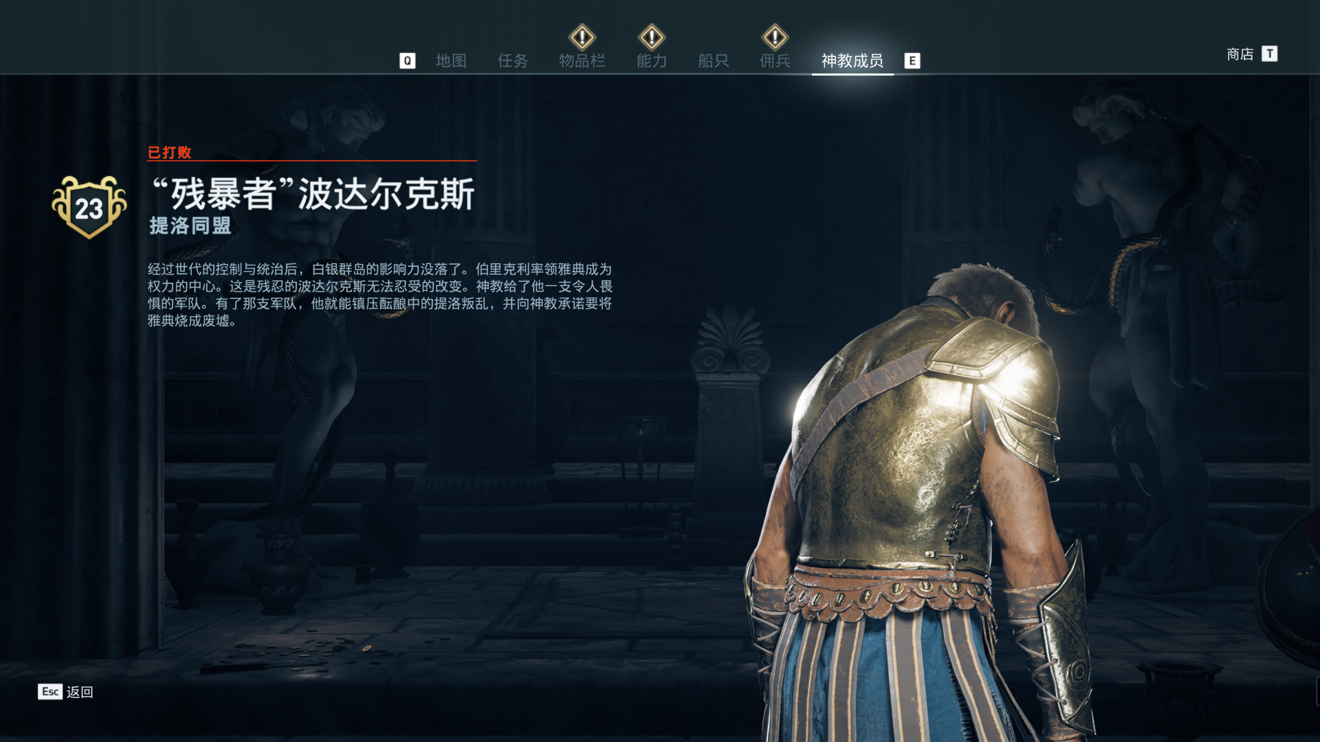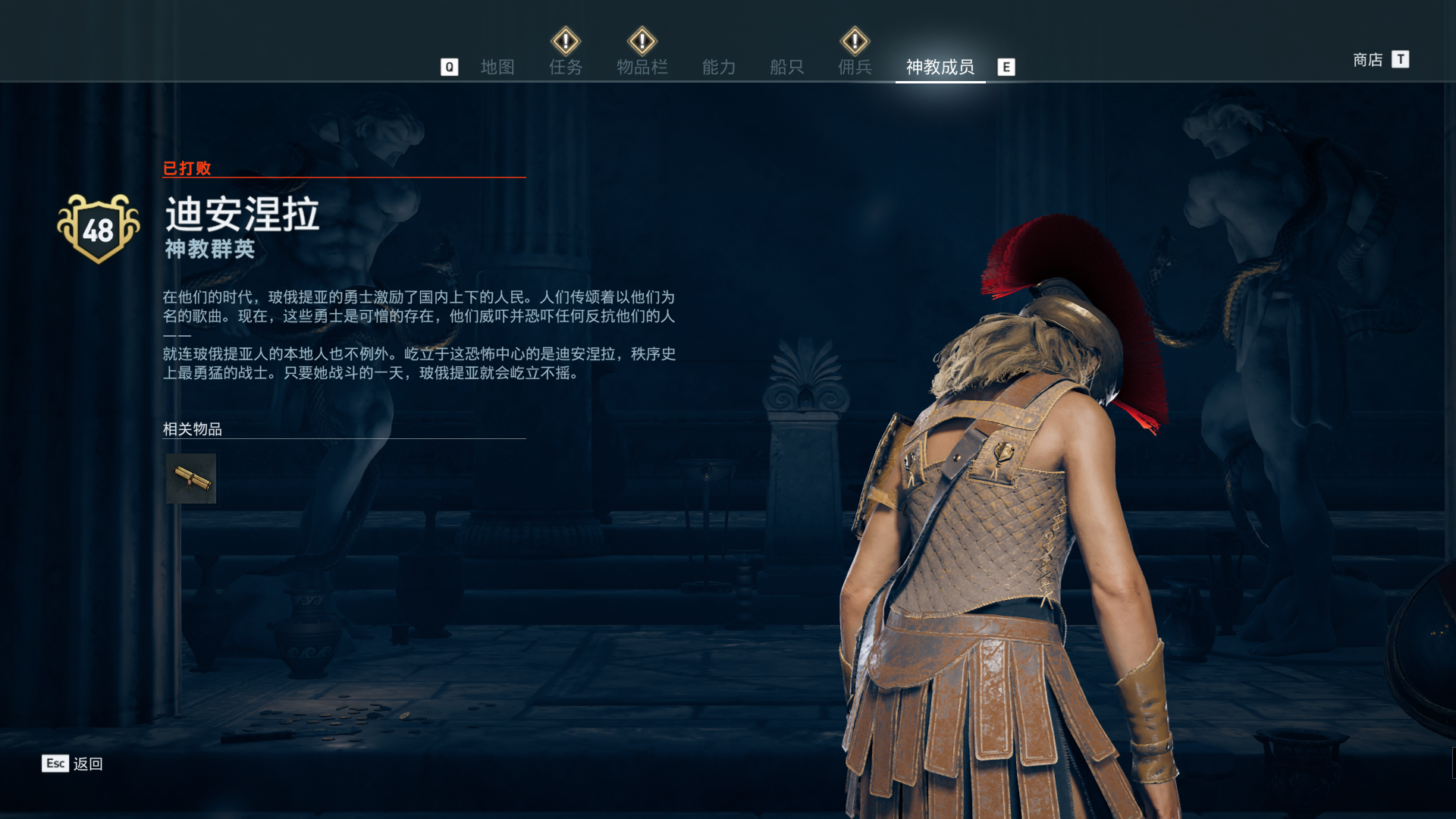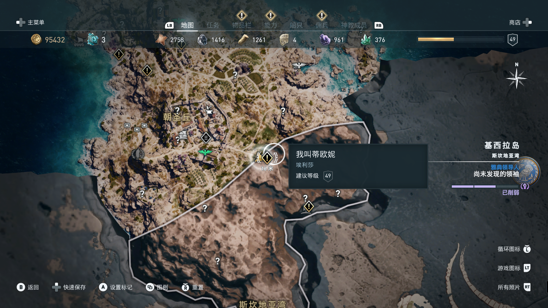 线索:这个是最难找的之一。从上一个任务得知“神教成员在锡拉岛的遗迹沉没”,在锡拉岛和科斯岛之间,有个叫“安菲里斯忒宫殿”的地方,靠近显示附近有神教成员线索。