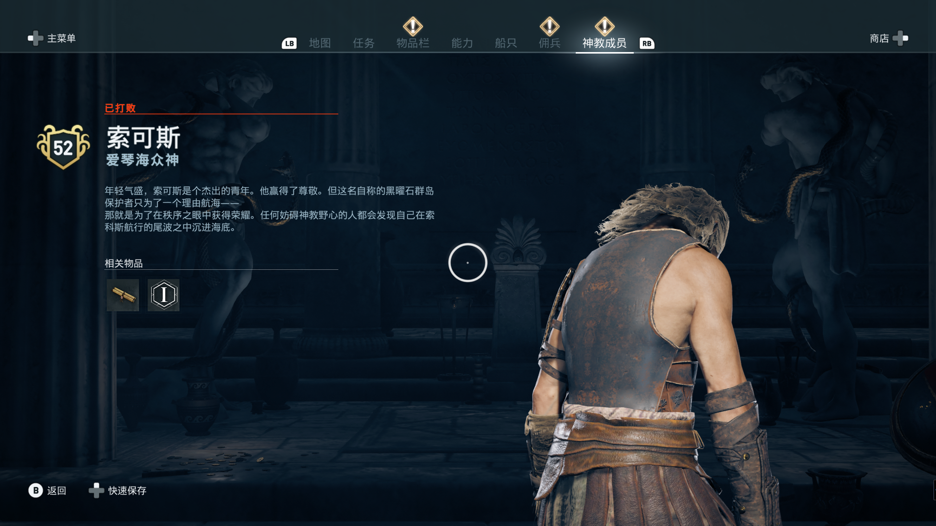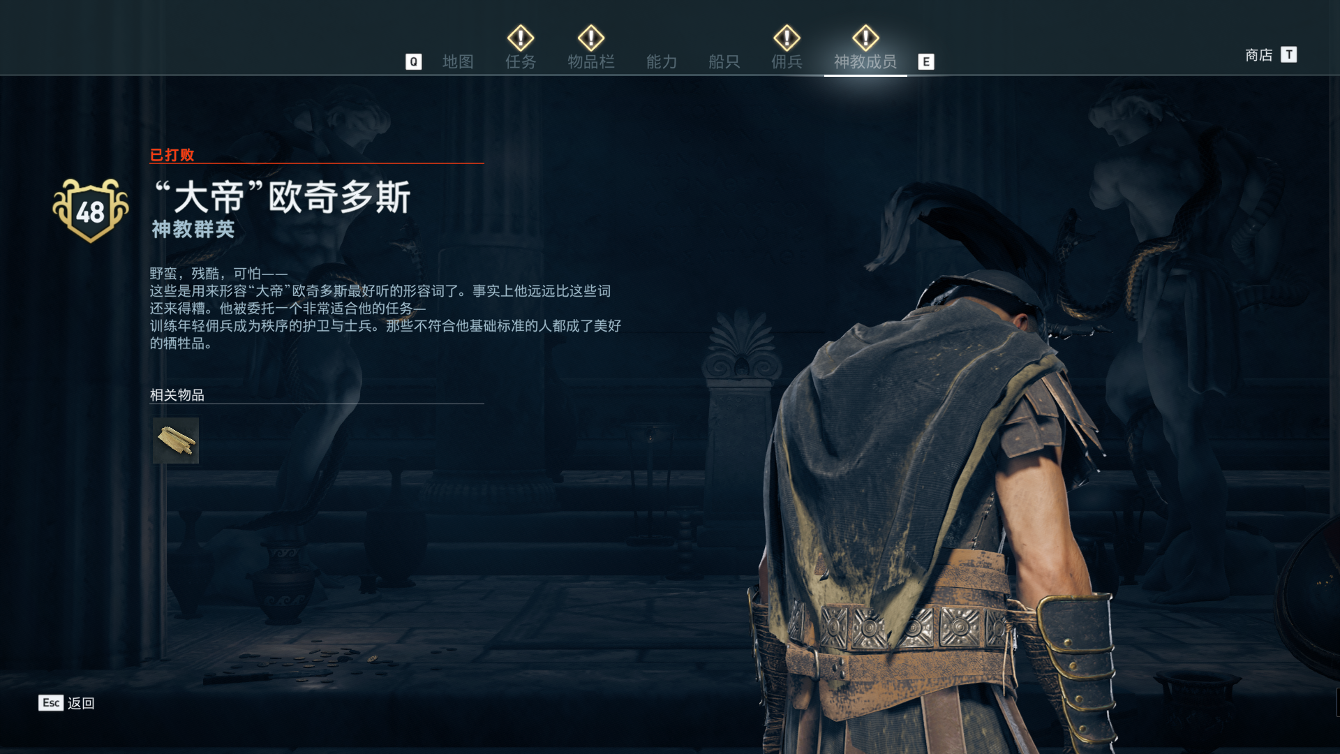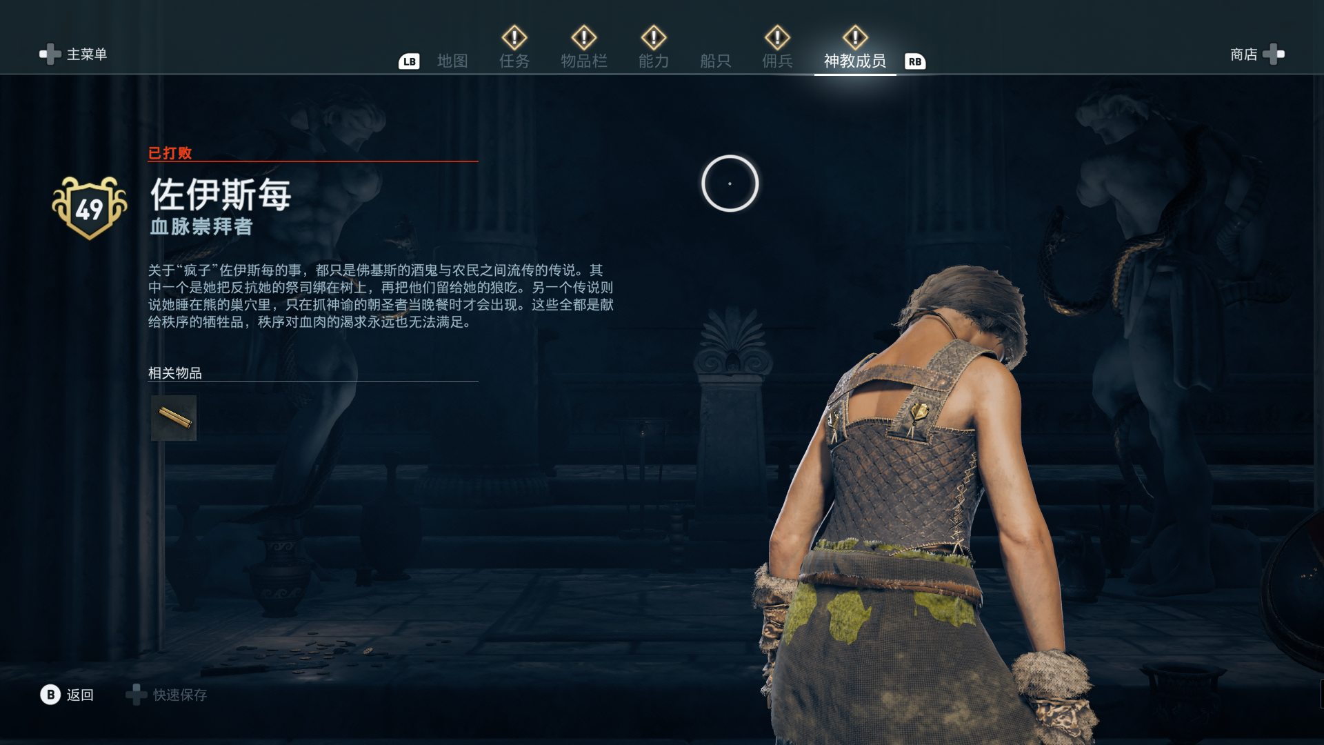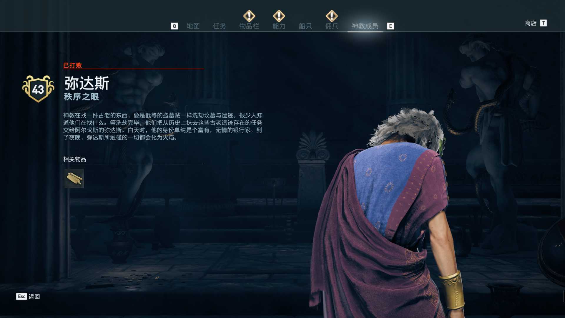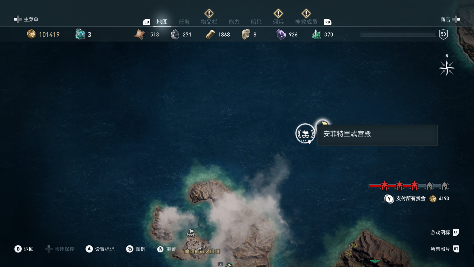 线索:这个是最难找的之一。从上一个任务得知“神教成员在锡拉岛的遗迹沉没”,在锡拉岛和科斯岛之间,有个叫“安菲里斯忒宫殿”的地方,靠近显示附近有神教成员线索。