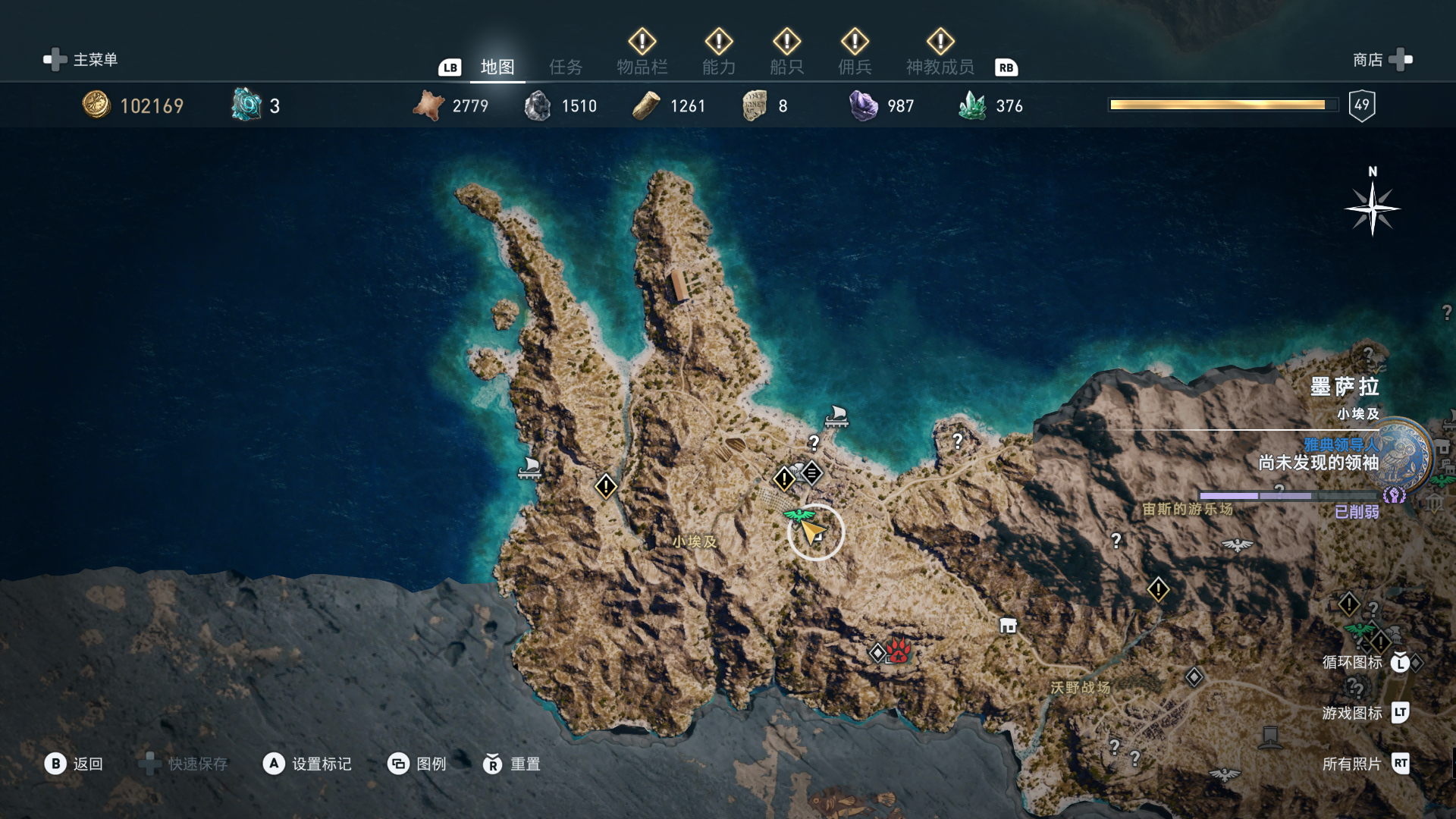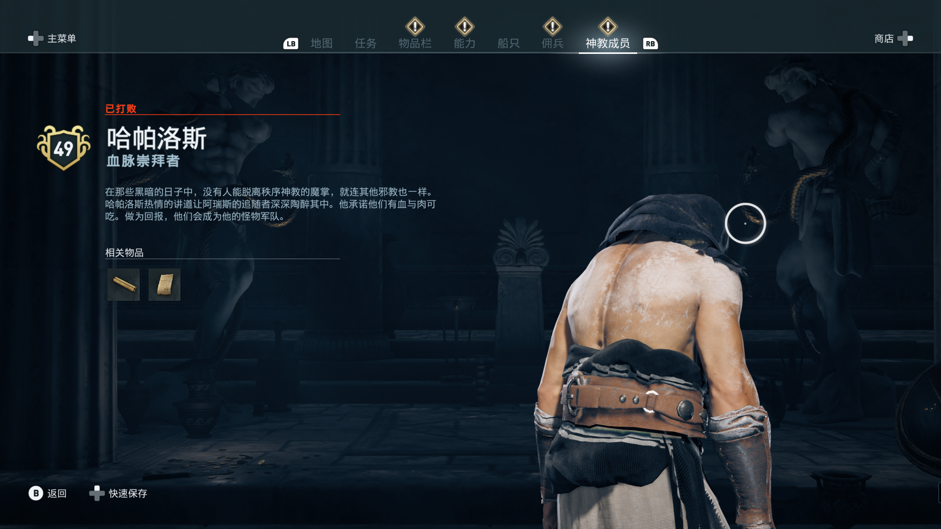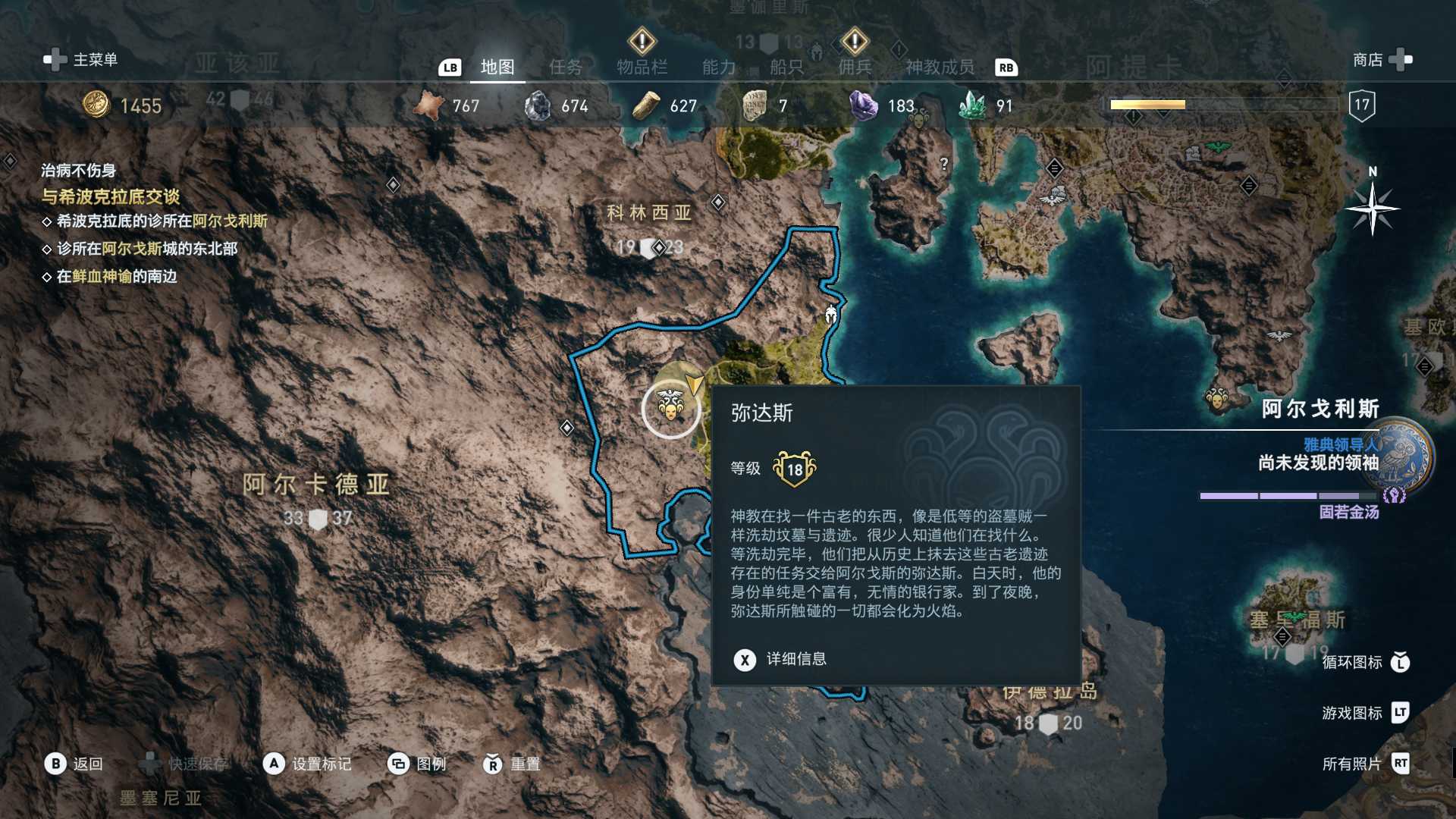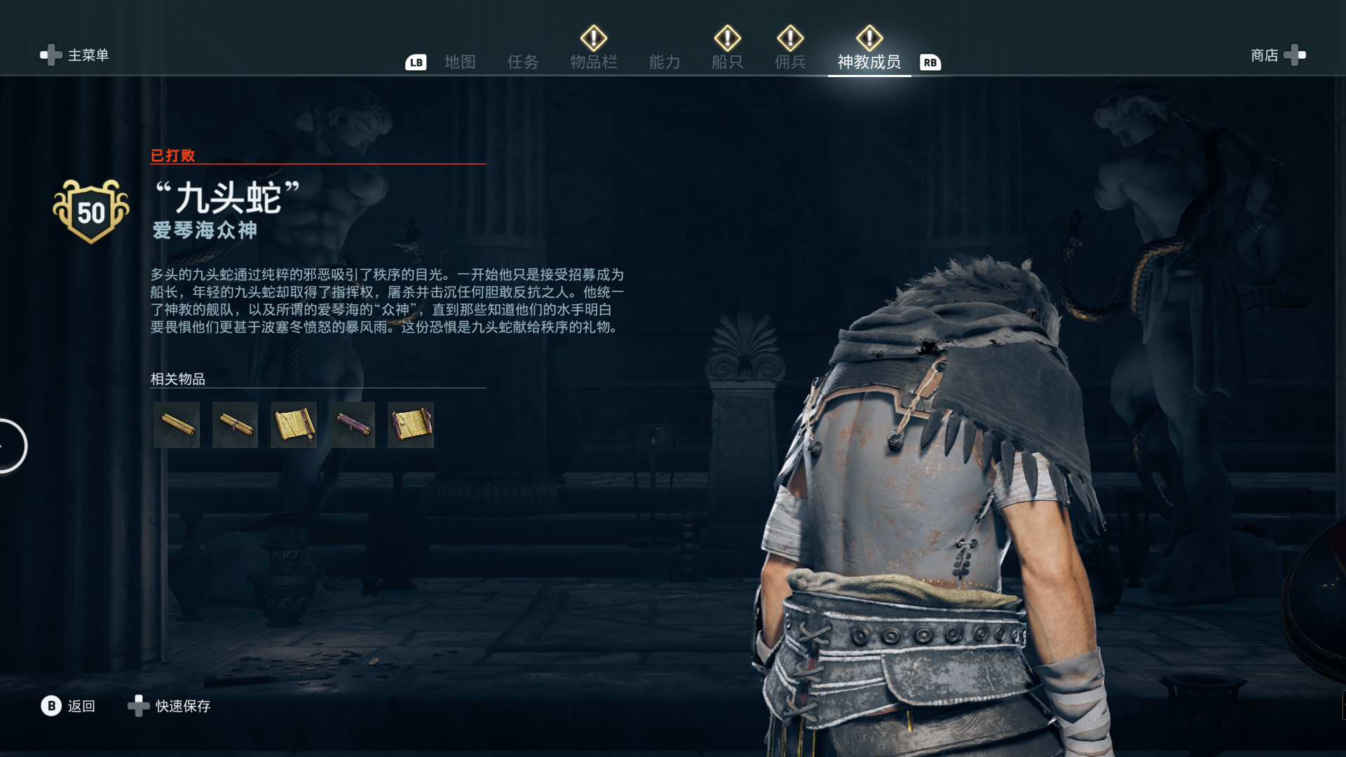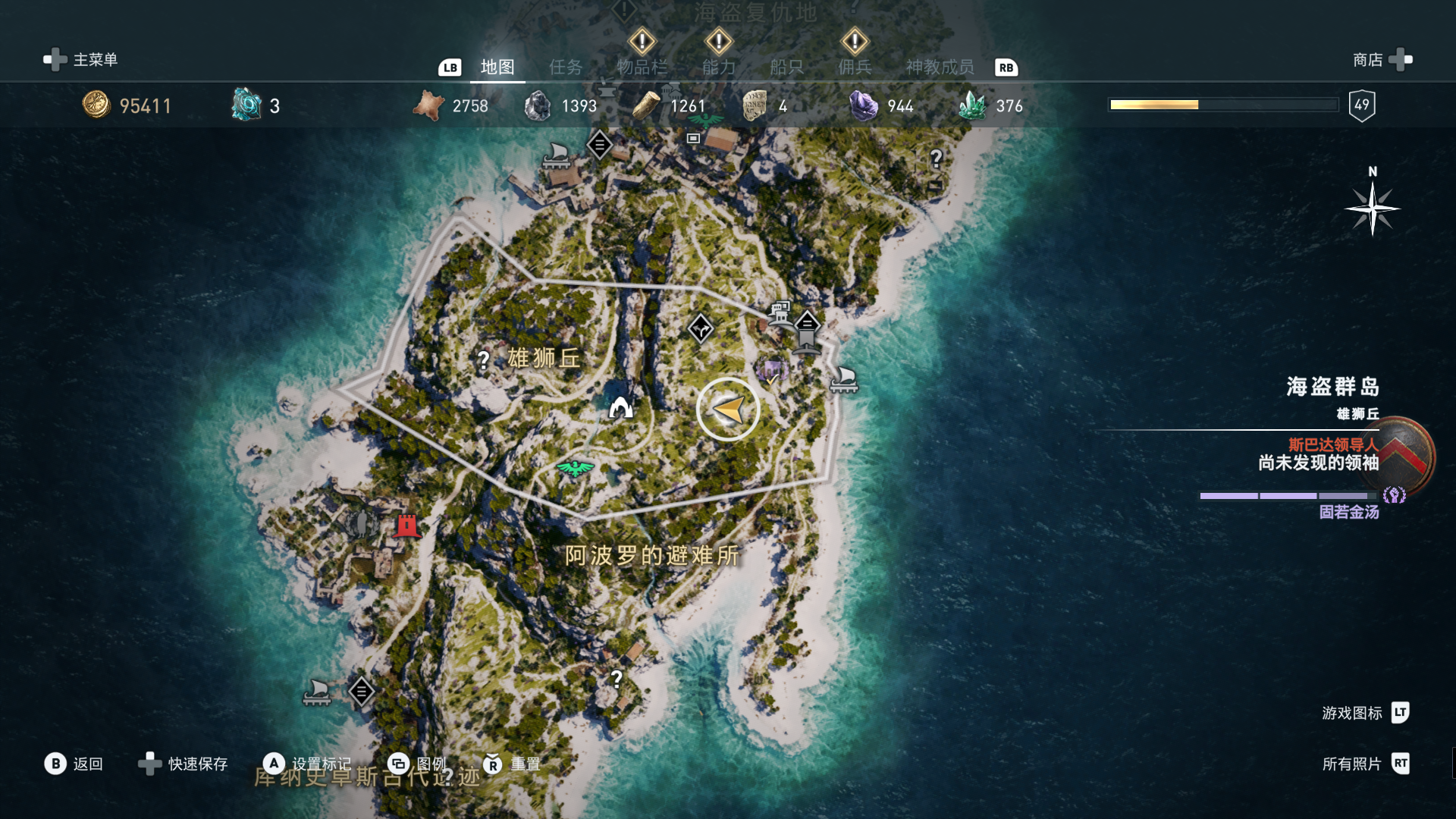 线索:这个是最难找的之一。从上一个任务得知“神教成员在锡拉岛的遗迹沉没”,在锡拉岛和科斯岛之间,有个叫“安菲里斯忒宫殿”的地方,靠近显示附近有神教成员线索。