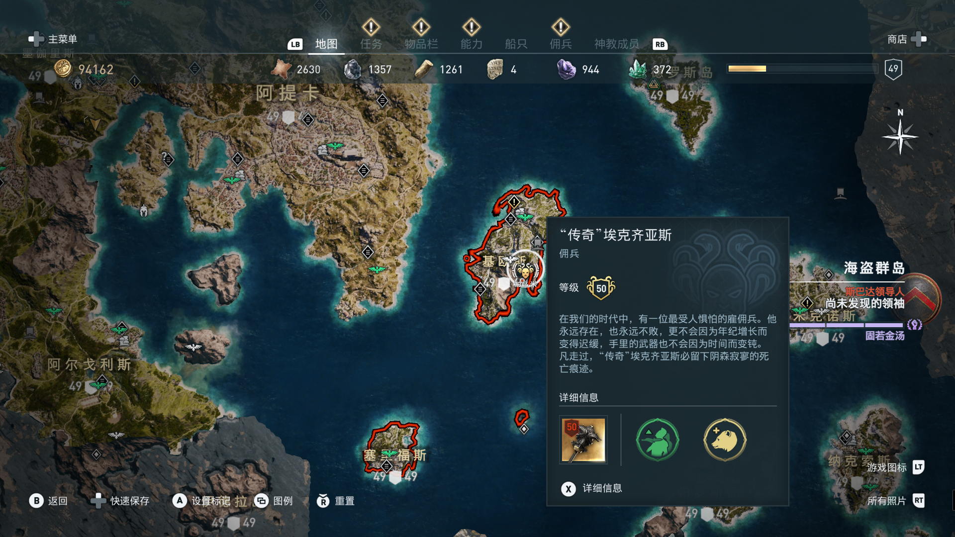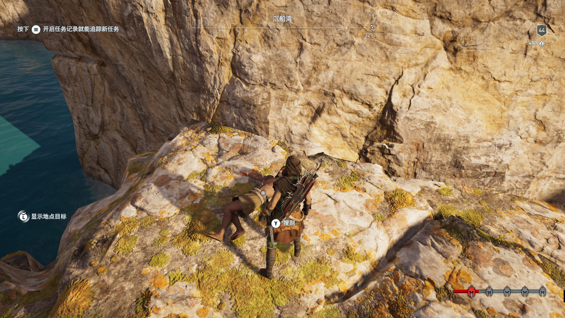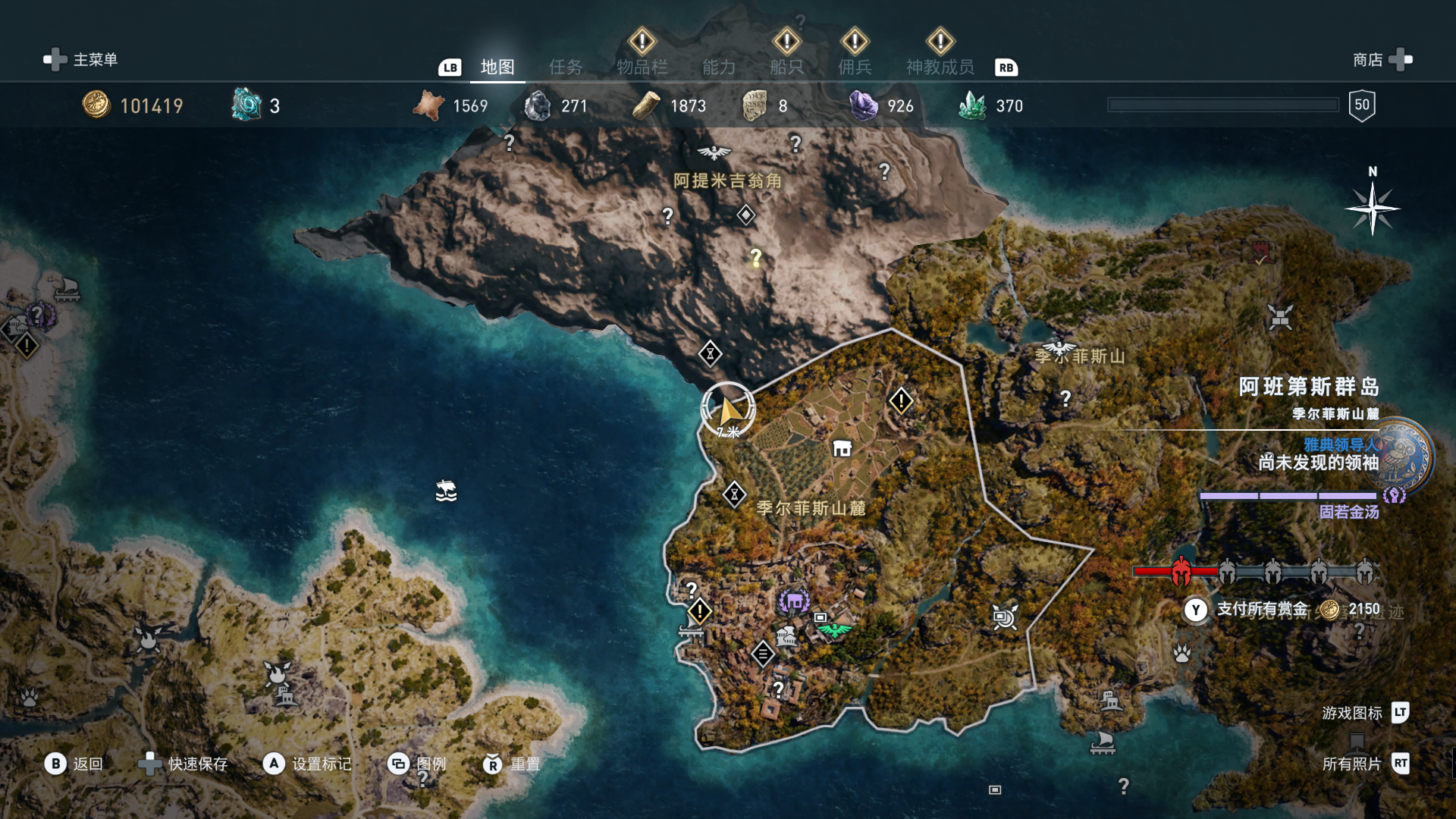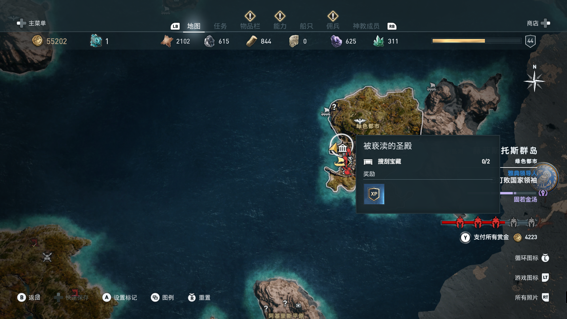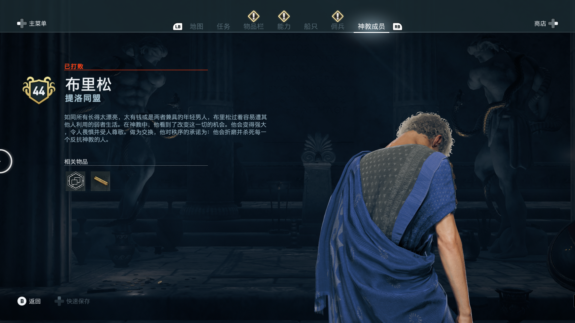 线索:这个是最难找的之一。从上一个任务得知“神教成员在锡拉岛的遗迹沉没”,在锡拉岛和科斯岛之间,有个叫“安菲里斯忒宫殿”的地方,靠近显示附近有神教成员线索。