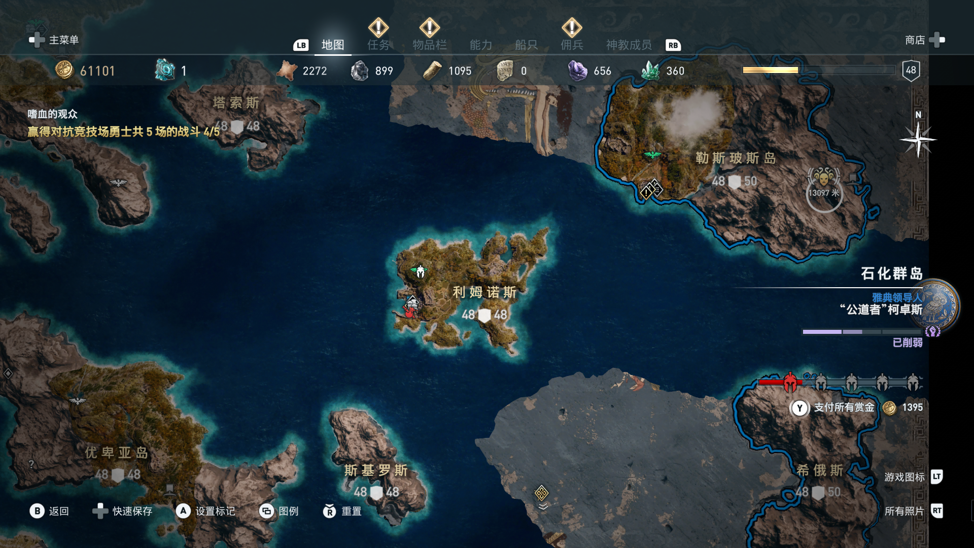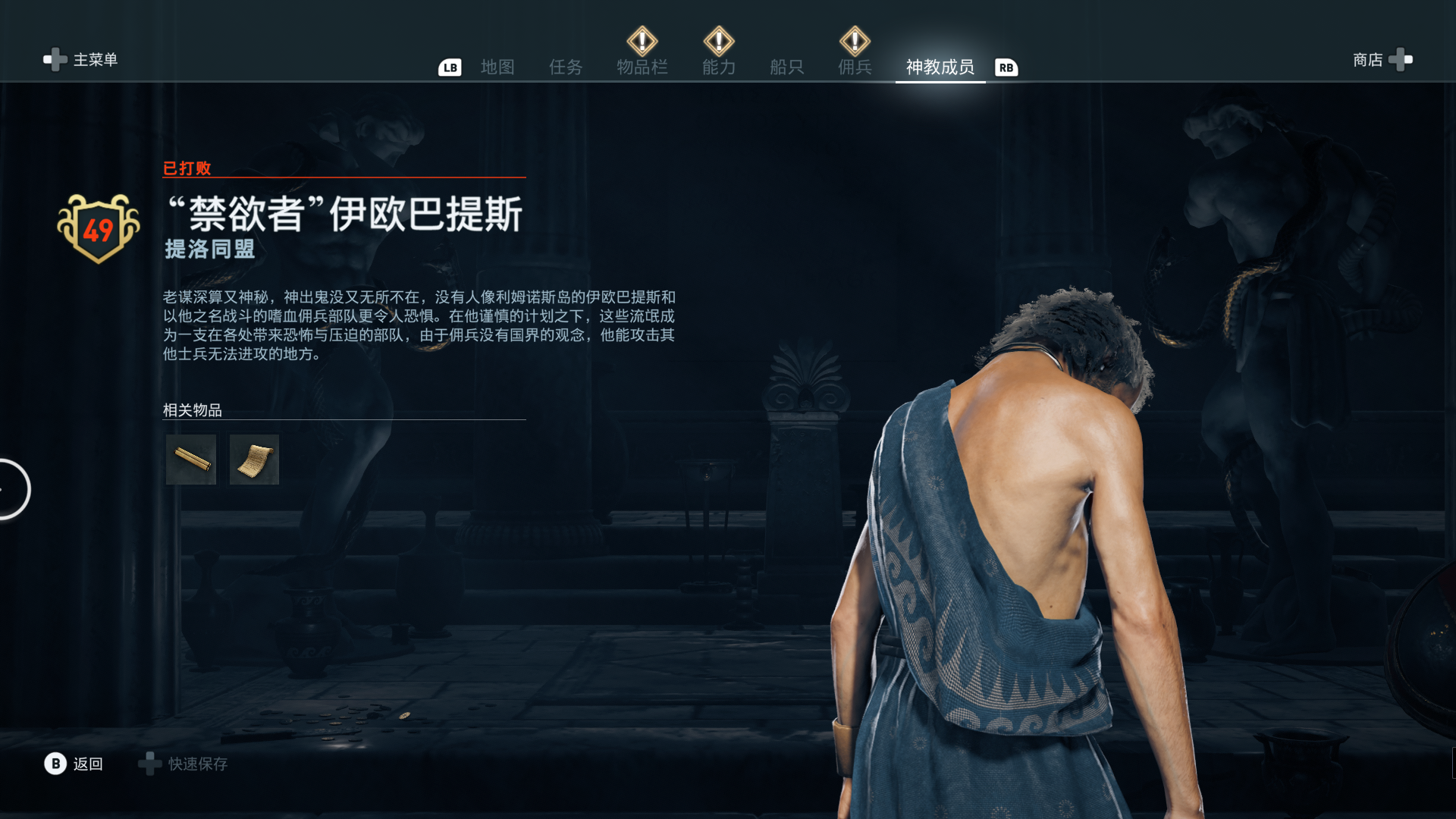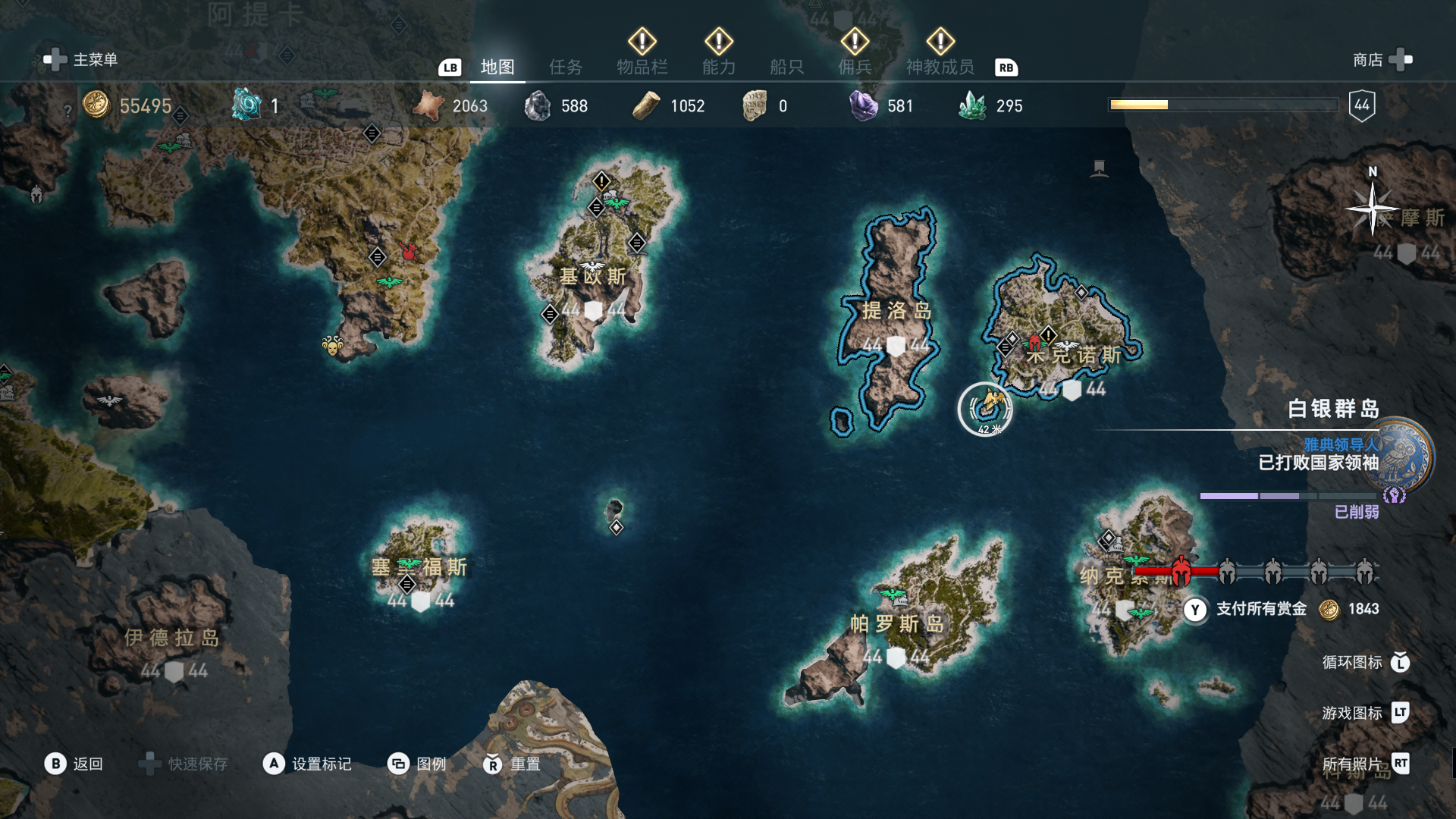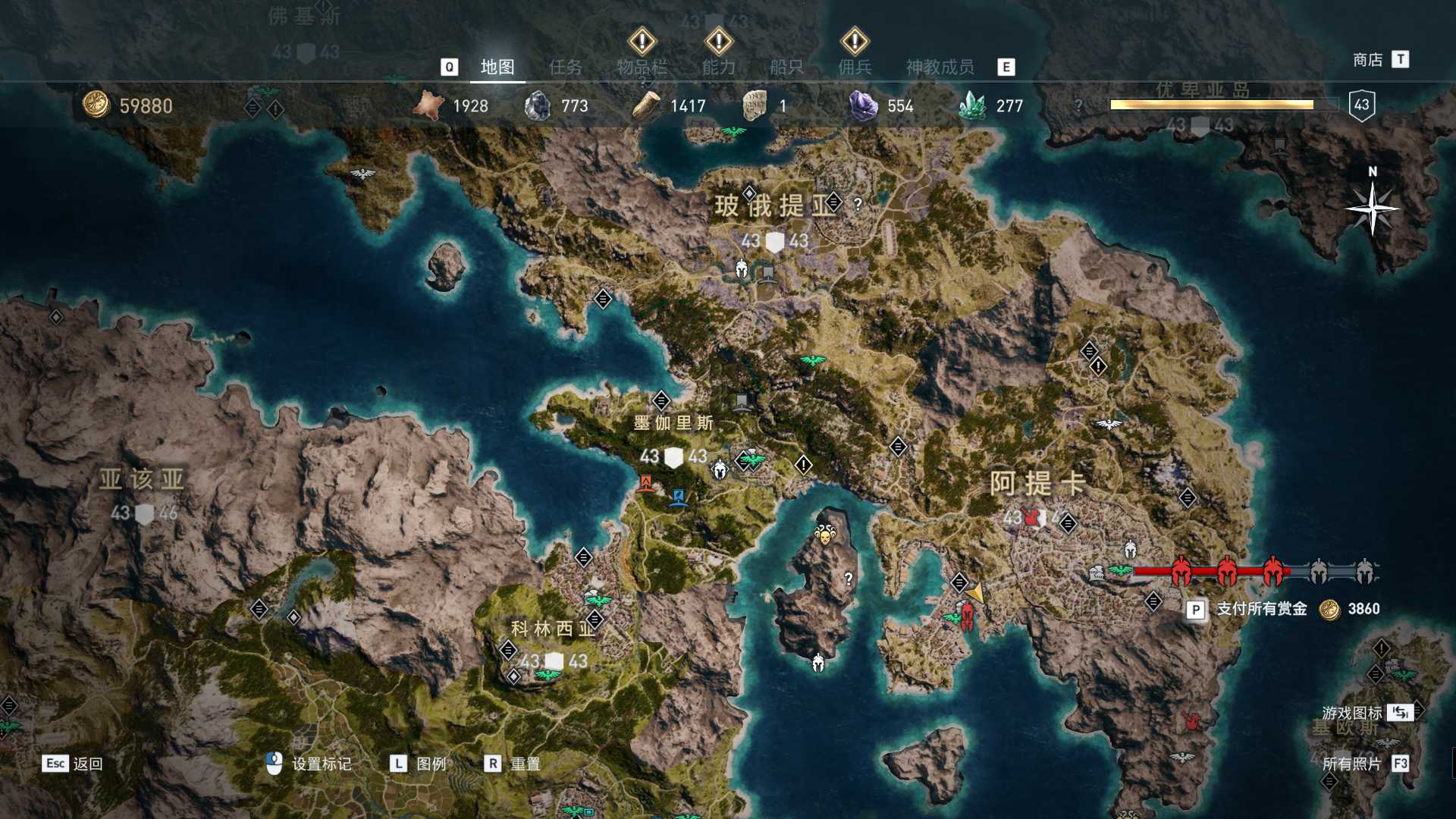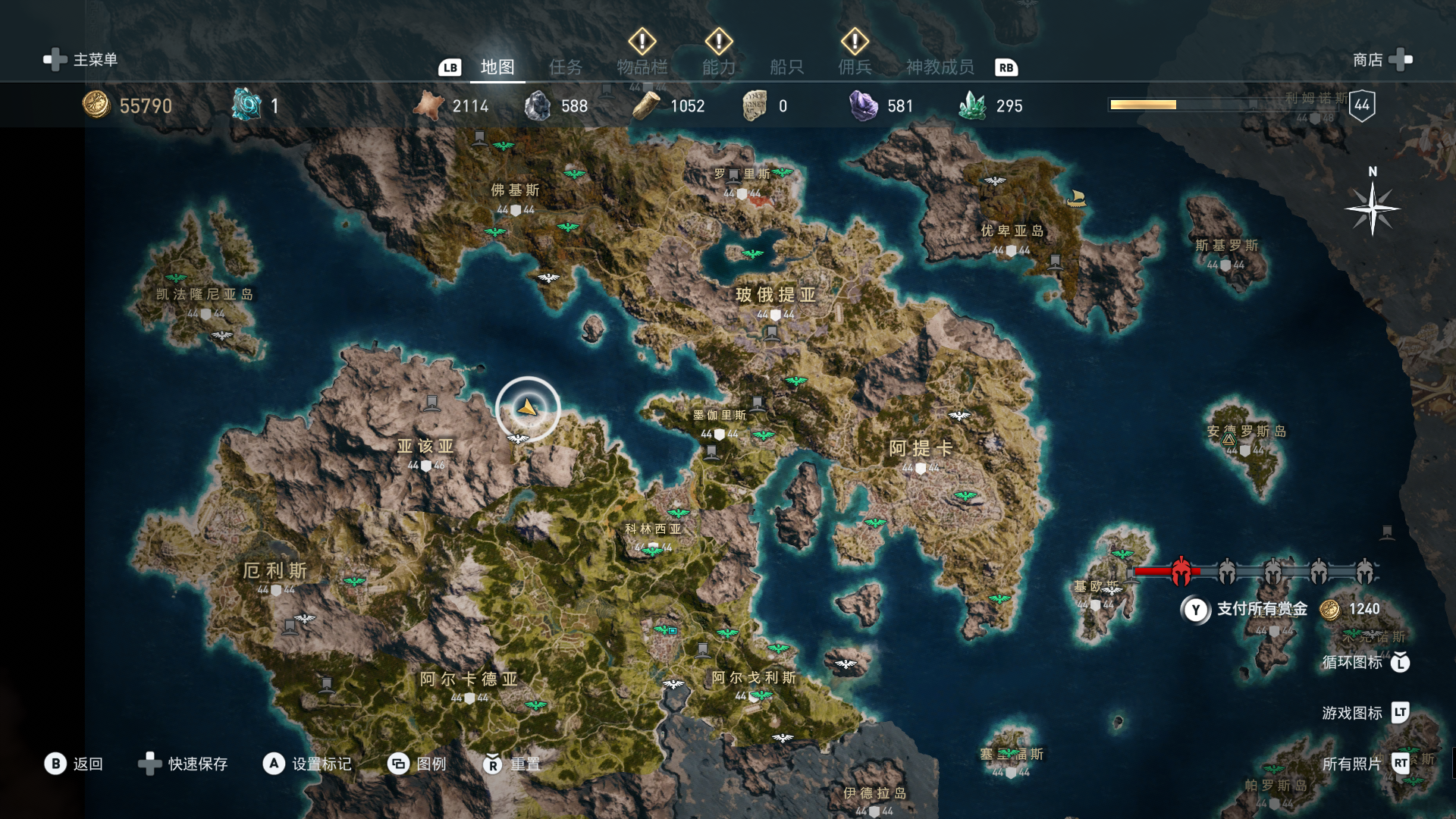 线索:这个是最难找的之一。从上一个任务得知“神教成员在锡拉岛的遗迹沉没”,在锡拉岛和科斯岛之间,有个叫“安菲里斯忒宫殿”的地方,靠近显示附近有神教成员线索。