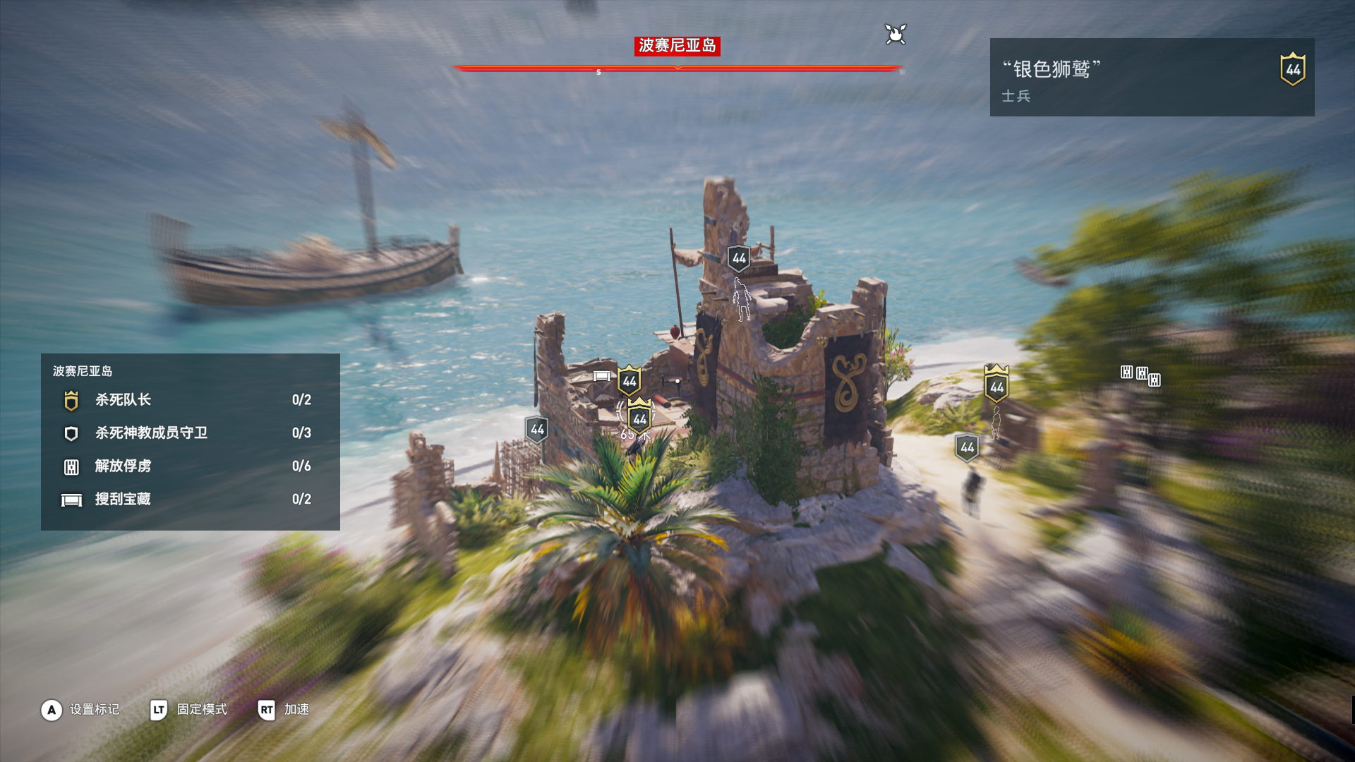 位置:在地图右下角墨萨拉和锡拉岛之间航行,他们的船通常是两三艘一起航行的,带头的有个金色图标,就是目标了。