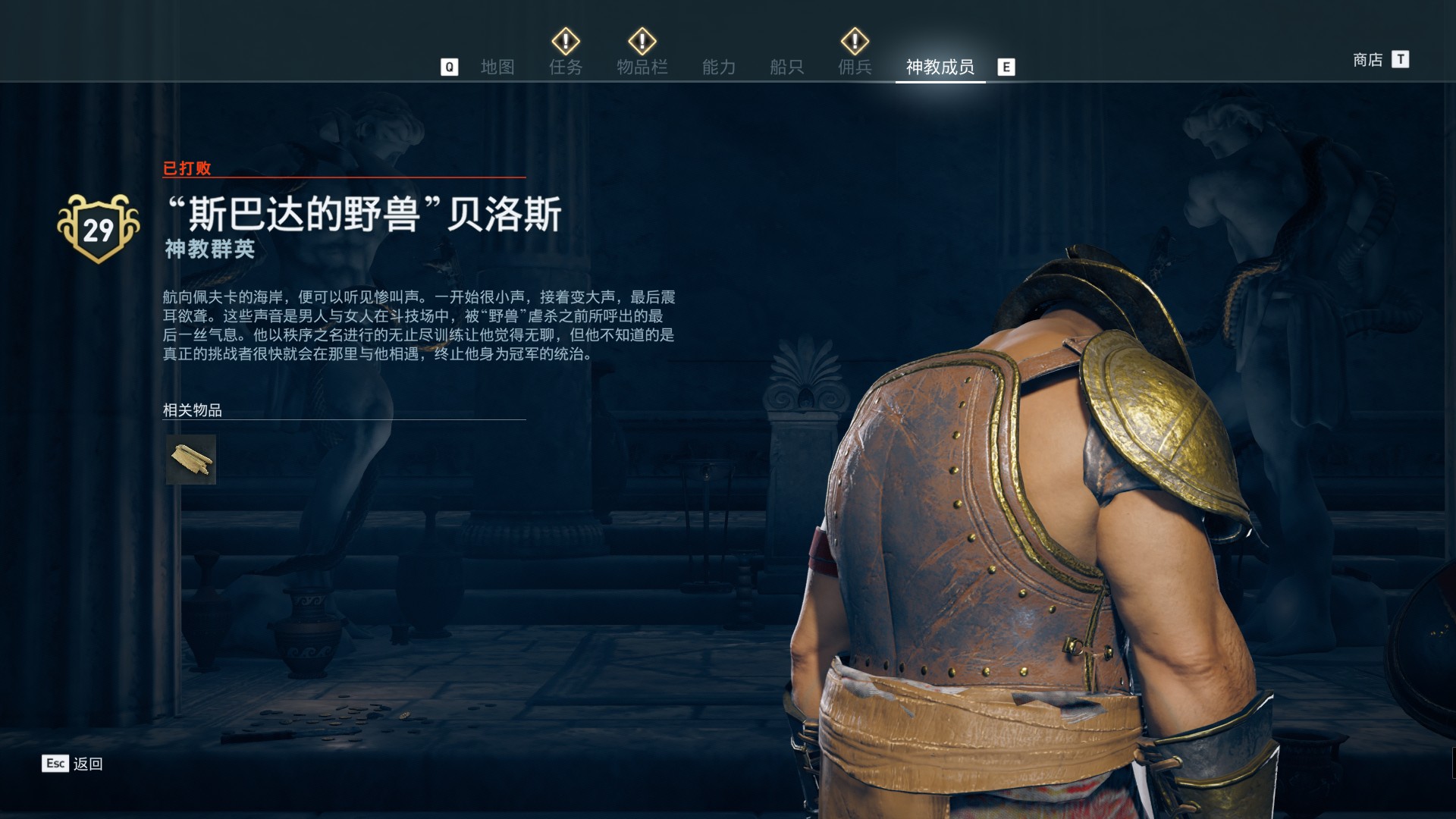 线索:在竞技场战斗可以引出他。第二个对手LV29的“斯巴达的野兽贝洛斯”