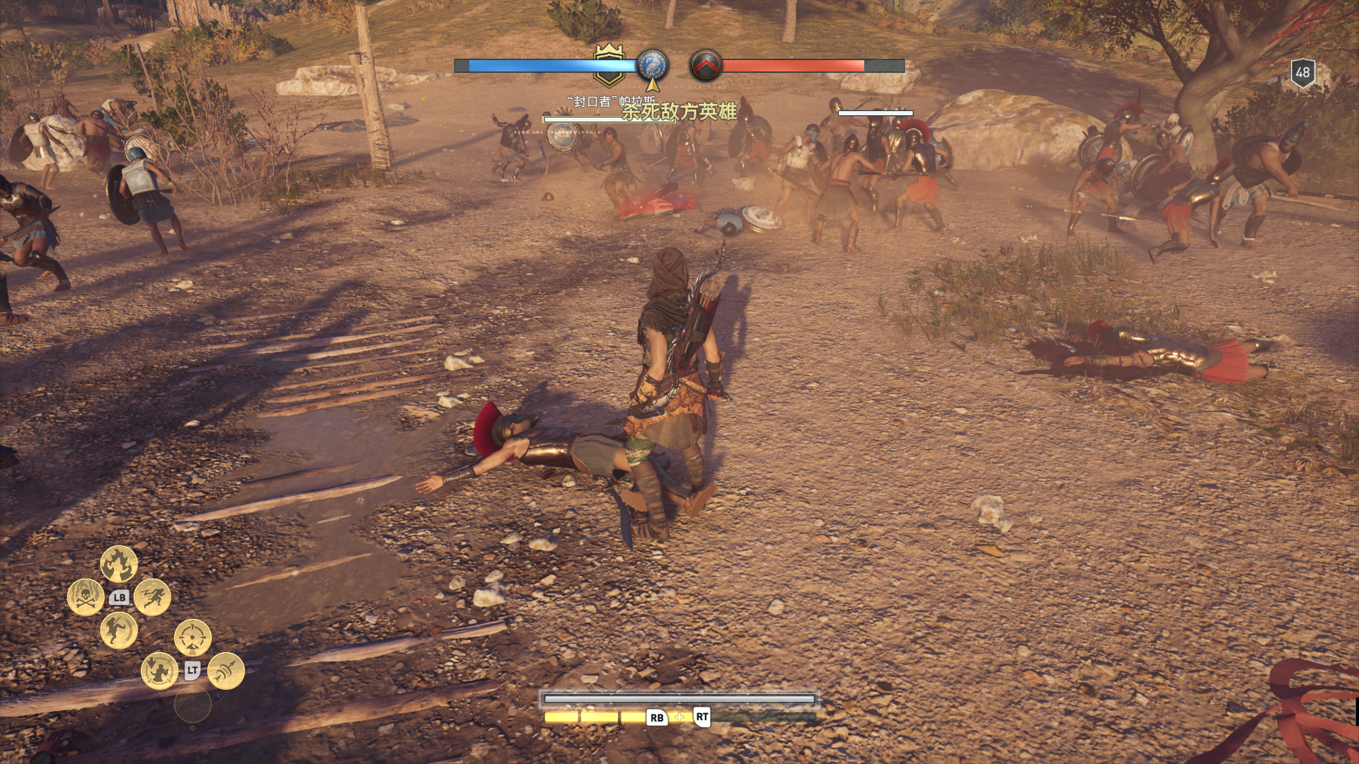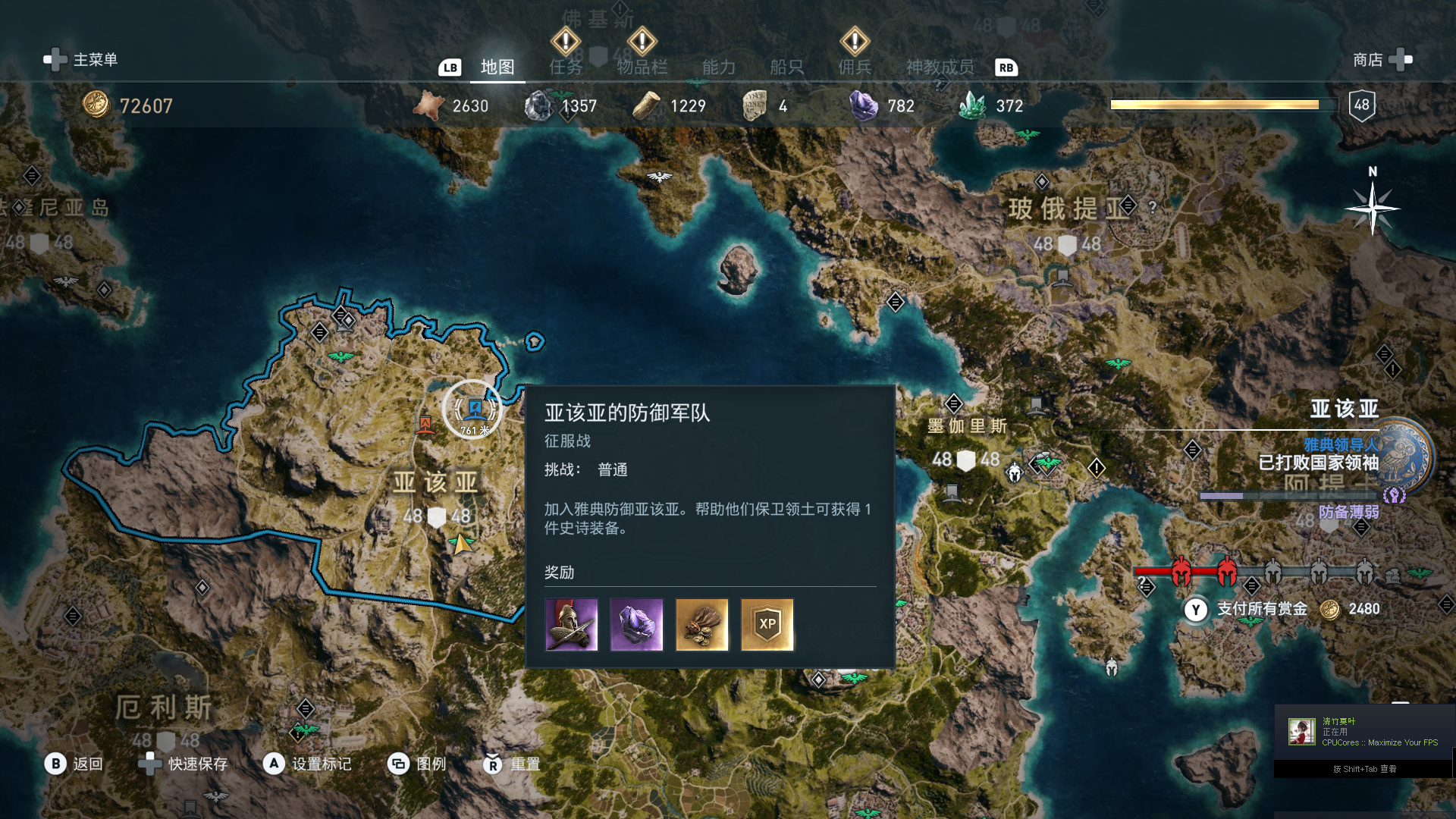 线索:亚该亚的征服战中,为雅典而战,即加入蓝色方。
