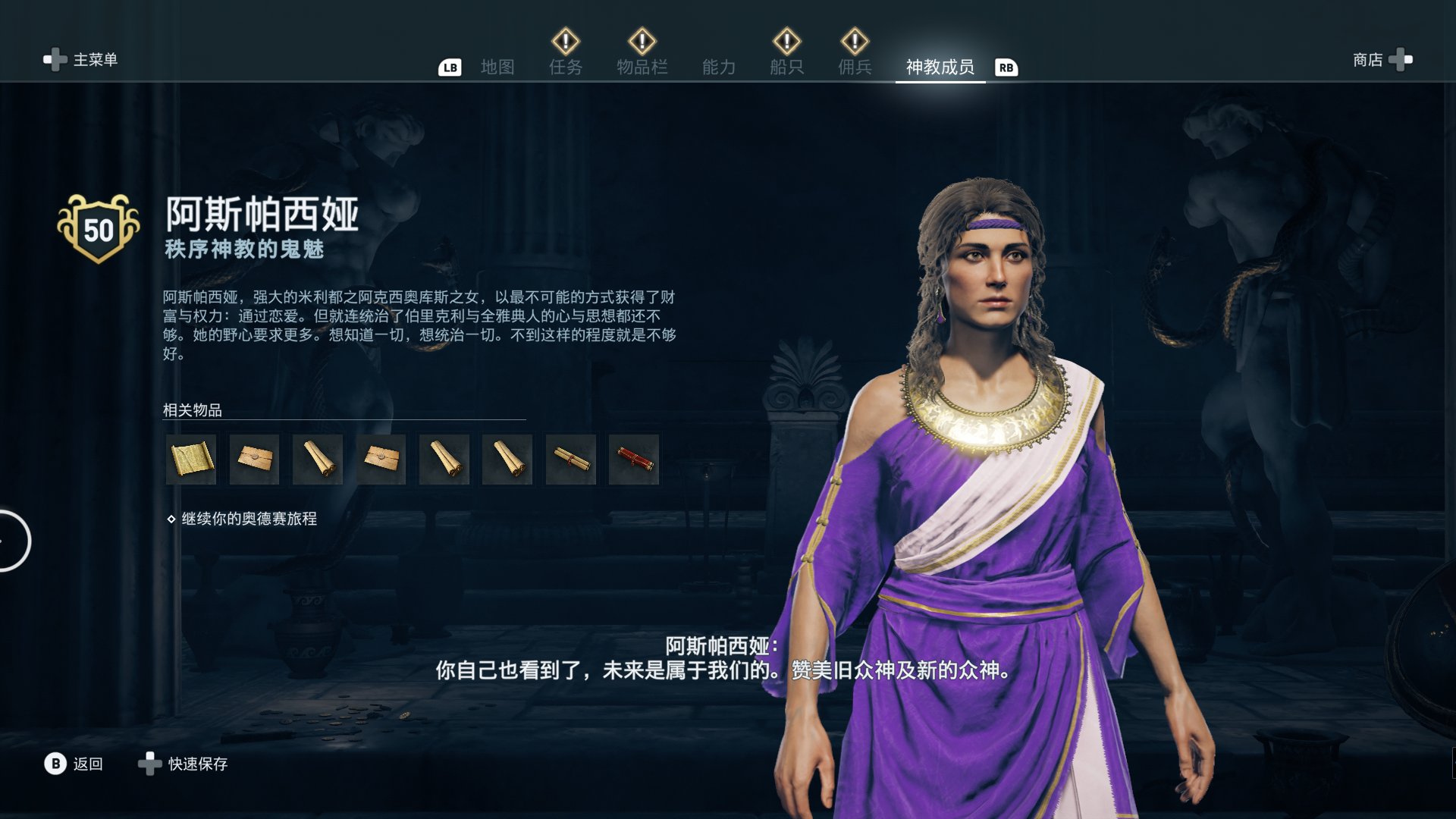 结语:其实玩到伯利克里之死时候就大概猜到阿斯帕西娅是神教成员了,只能没想到居然就是鬼魅。好了,全网最全原创的《刺客信条:奥德赛》秩序神教全成员位置、线索都在这了,欢迎收藏。本篇攻略是全网最全,个人原创,肝了好久才产出的QAQ。