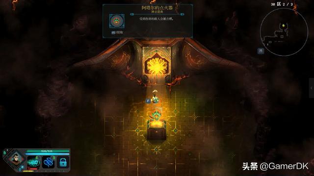 除了技能之外,圣物、符文和祭坛也是影响战斗的关键因素。其中圣物为本作战斗非常重要的部分,圣物可以在关卡中提供强大的增益效果,你可以通过宝箱、神殿、商人购买获得,常态下只能携带一个圣物,后期可以携带多个圣物,强力的圣物可以让战斗事半功倍。符文则仅对单个技能提供增益,随着战斗的进行符文会有所损耗,如果不进行修复,符文的增益效果就会消失。祭坛作为众多地牢探索类型RPG的标准配置也能为挑战减少不小阻力,增加防御、攻击、移速、金币掉落量等功能也让战斗内容更加丰富。