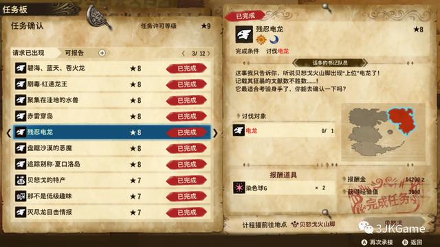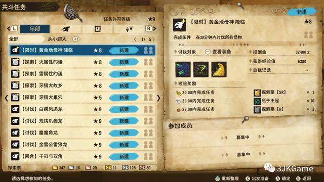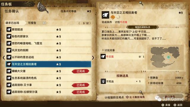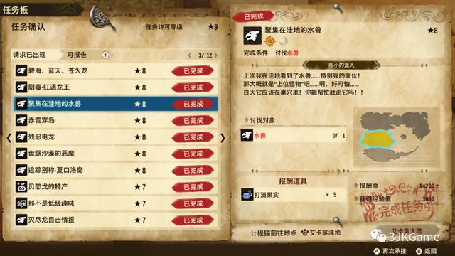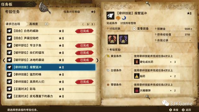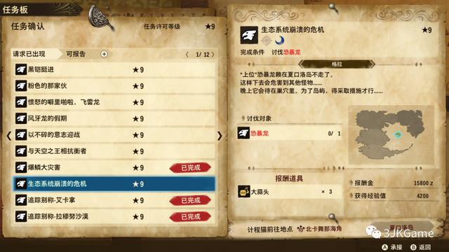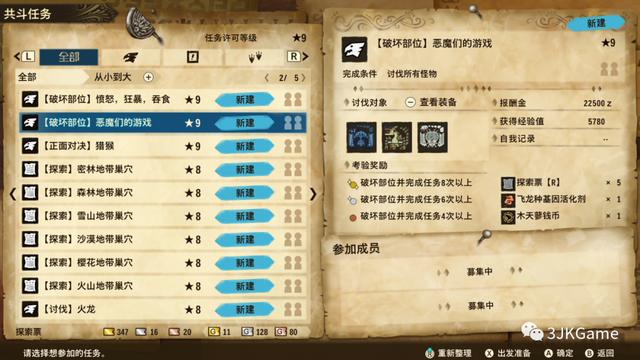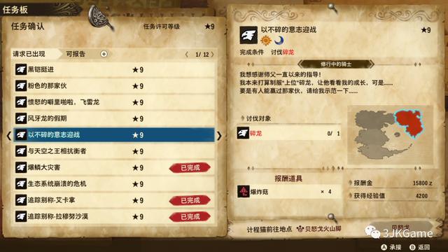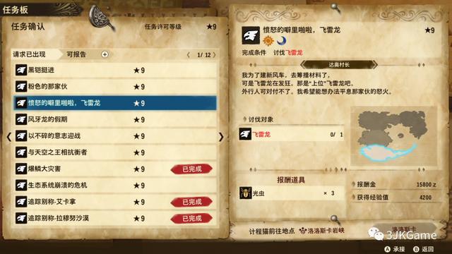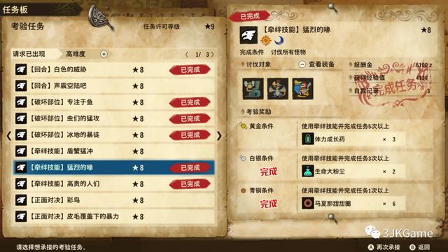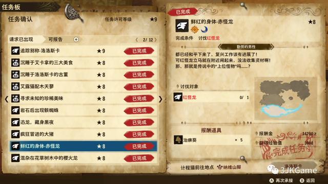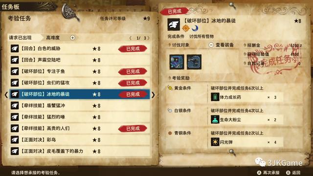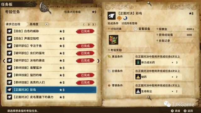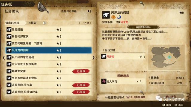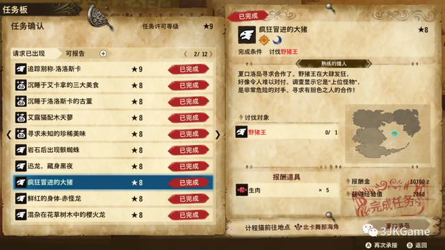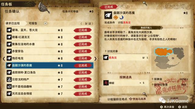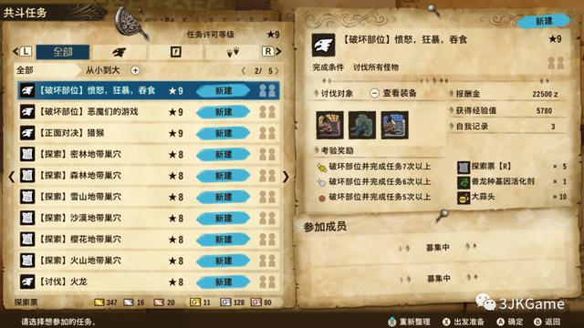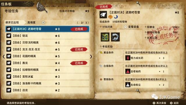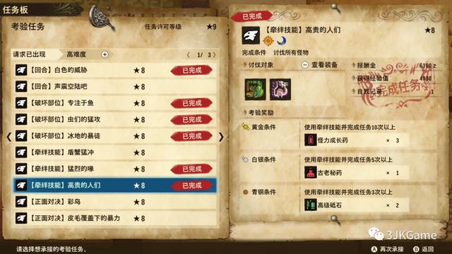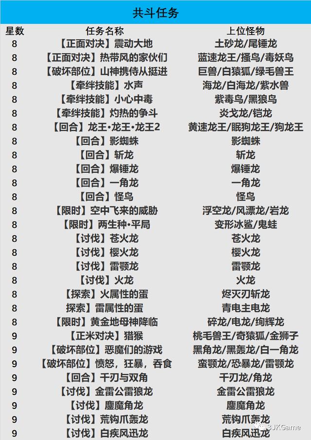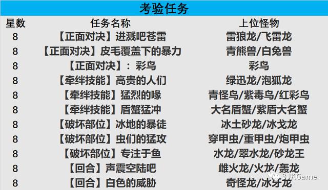首先是副任务8⭐和9⭐任务基本都是对上位怪物的讨伐。我们就先来看一下