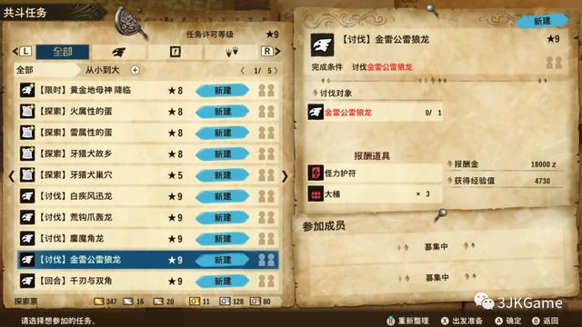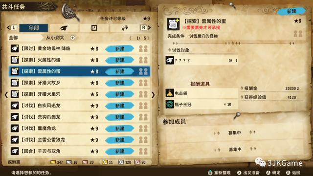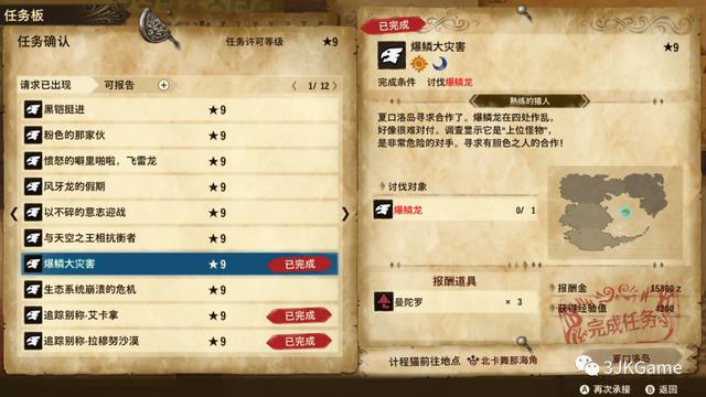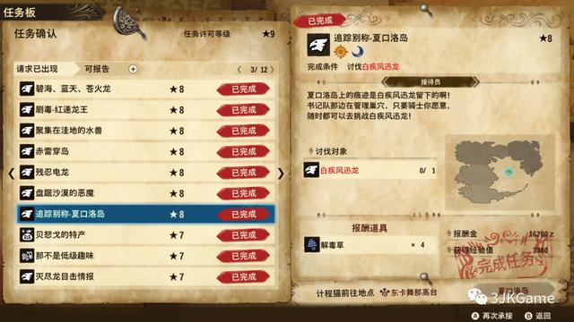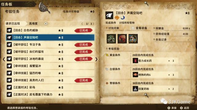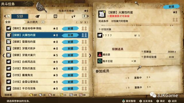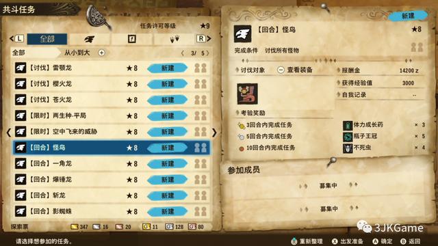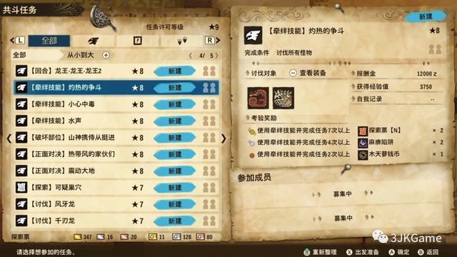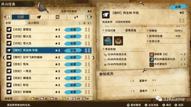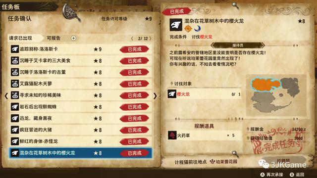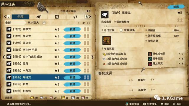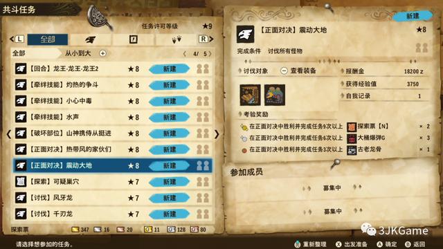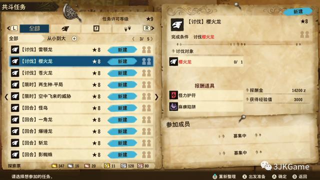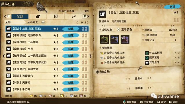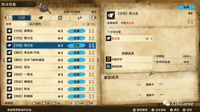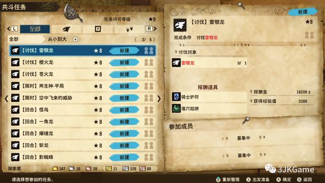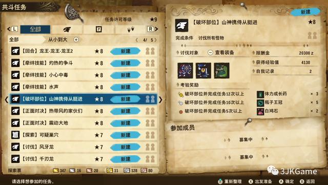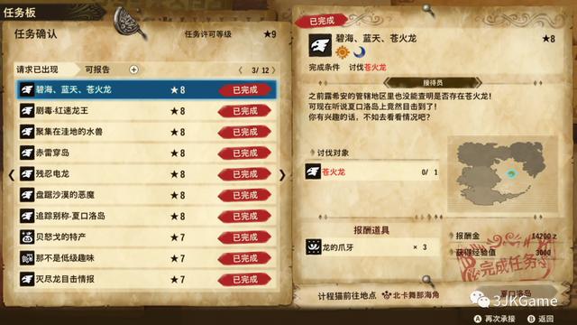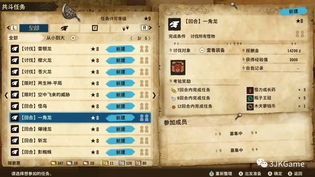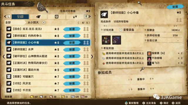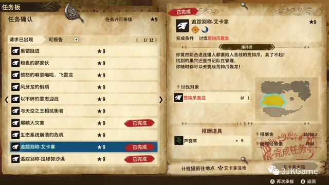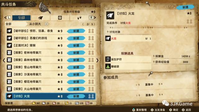 首先是副任务8⭐和9⭐任务基本都是对上位怪物的讨伐。我们就先来看一下