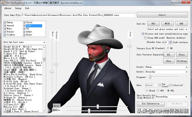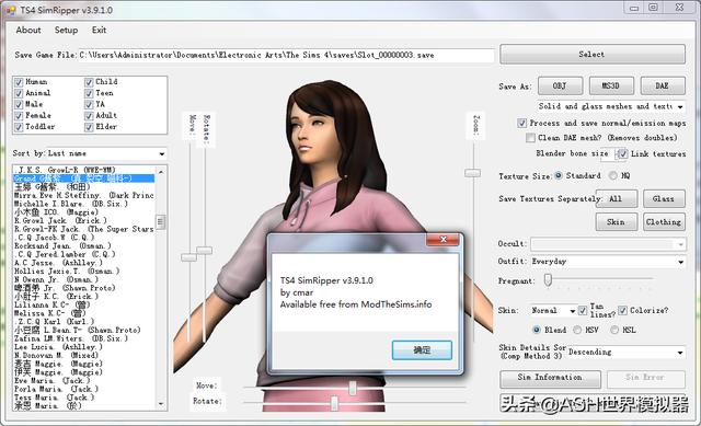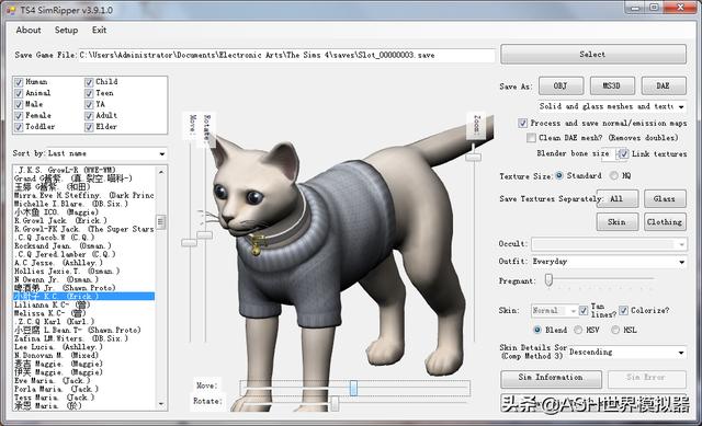 额外备注:该软件仅支持重构、提取模拟人生4存档里的角色模型,其他物件请使用Sim 4 Studio或者TSR Workshop之类的MOD软件来提取;另外,个人之后还会发布一个对应模拟人生3的SimRipper,不过这个软件也是BUG不少且很久不更新;最后,该软件只是读取存档来生成临时新数据,理论上不会因自身的BUG造成原始存档文件破损,不过为了安全起见还是建议操作前先备份一下原始存档为佳。