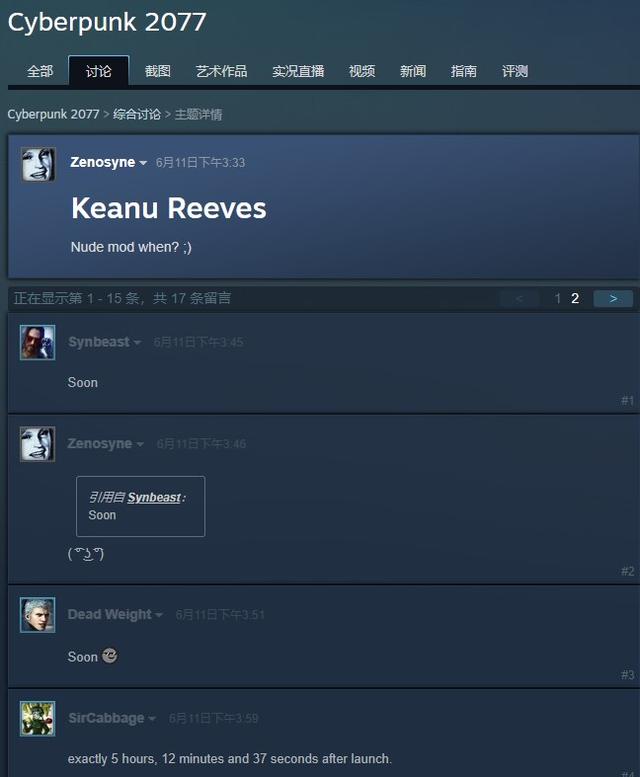 《赛博朋克2077》发售日的公布和基努·李维斯的宣传让本作霎时间成为玩家近期讨论的热点。尽管这款游戏距离发售还有10个月,但Steam上已经有大量的玩家讨论这款游戏。