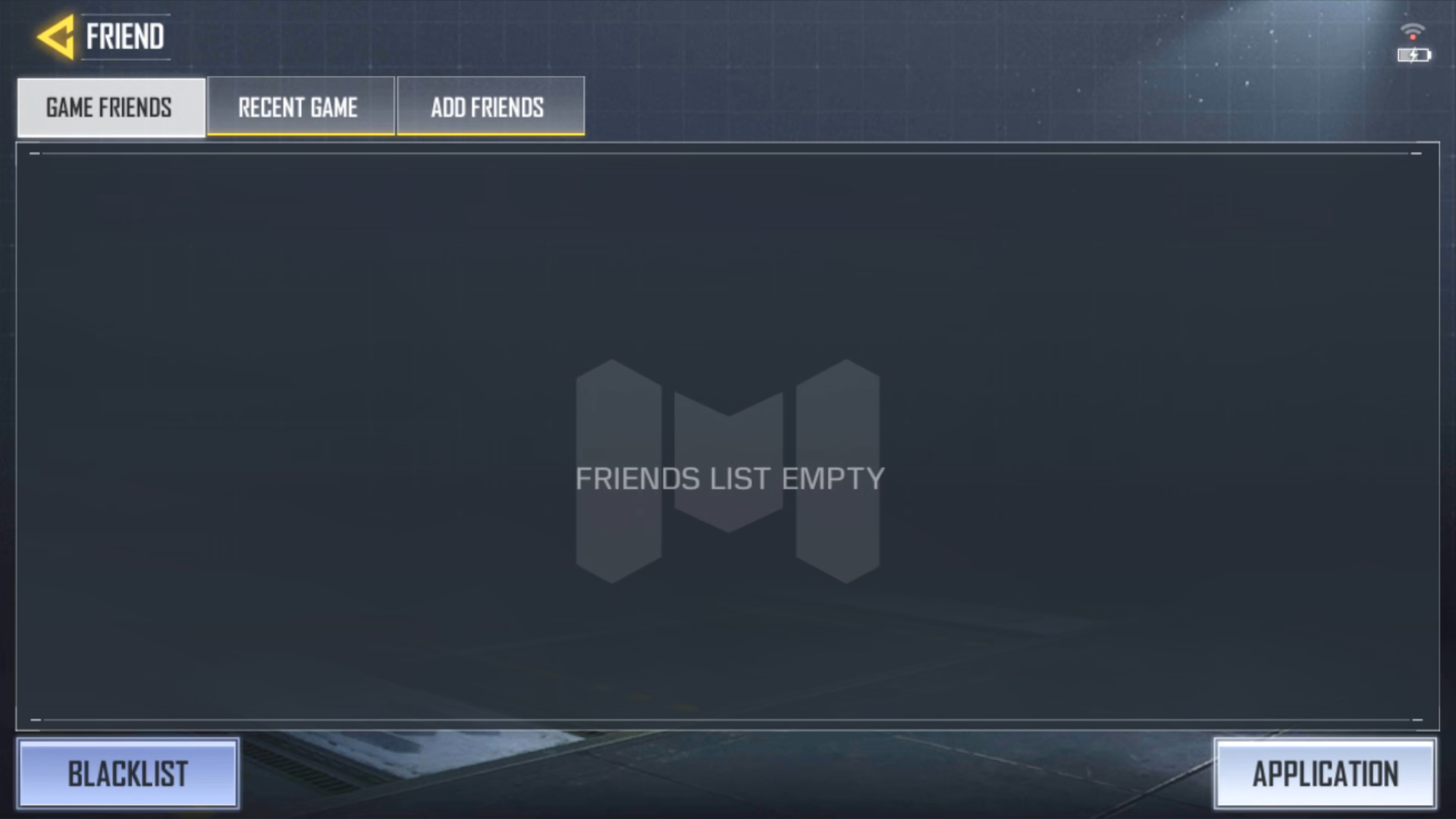 如图这张截图的状态是还没有好友,左下角的Blacklist是黑名单,右下角的Application是申请,可以显示被加好友的信息。