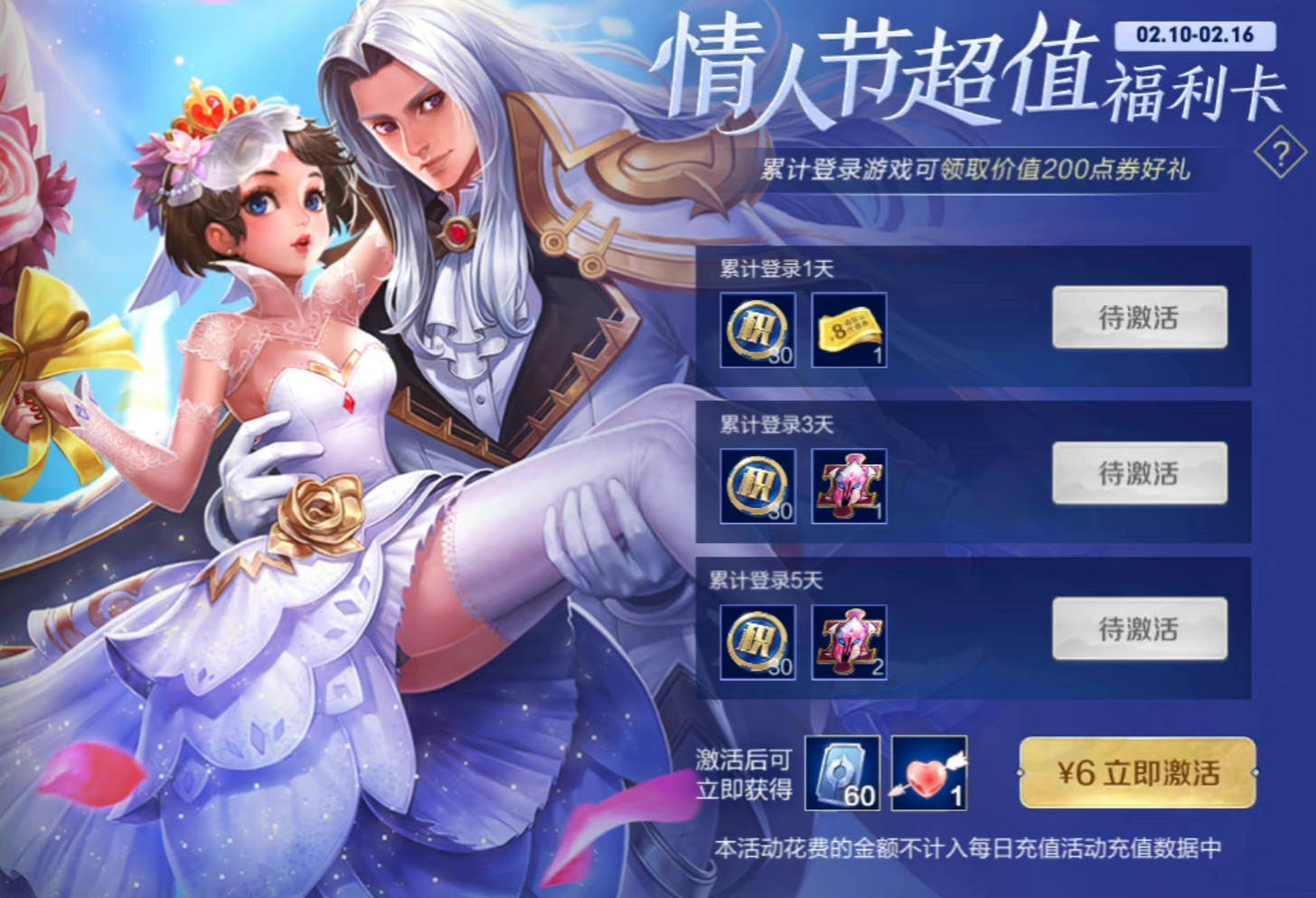 真爱令牌如果自己抽的话,一般也就是200左右,运气好价格会低一点,运气差就会高一点,总之就是在这个区间。如果想价格低的话,那么和别的玩家交易是最划算的,现在只要160块钱,之后价格肯定还会走低。当然,这里提醒大家,交易一定要走正规的平台,不要随便相信别人,不然到时候很容易被骗。两款情人节皮肤如果有300点券的优惠卡的话,那就不要购买礼包,分开买最好。6元福利卡的活动还是值得参与的,特别是需要荣耀积分的玩家。
