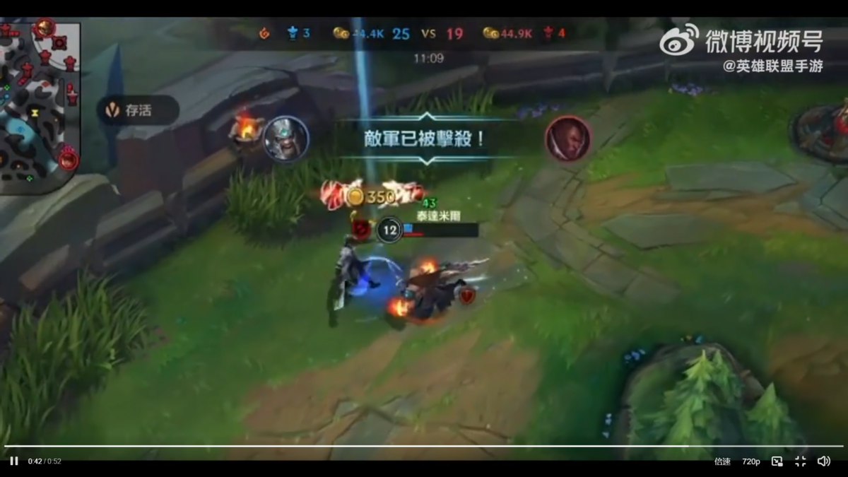 在视频中,周董操刀蛮王泰达米尔,在敌方二塔下力战龙龟与亚索,越塔击杀龙龟后,横穿半个地图,与亚索展开了漫长的追击与逃跑,周董细节走位躲避敌方包夹,丝血逃生,还在上路草丛埋伏卢锡安成功反杀,安然逃脱。最后回城时还不忘发个表情炫耀一下,看得出周董对自己这一波操作非常满意,网友们也纷纷表示“天秀”、“羡慕能追周董这么久”、“不发歌以后操作越来越好了”。