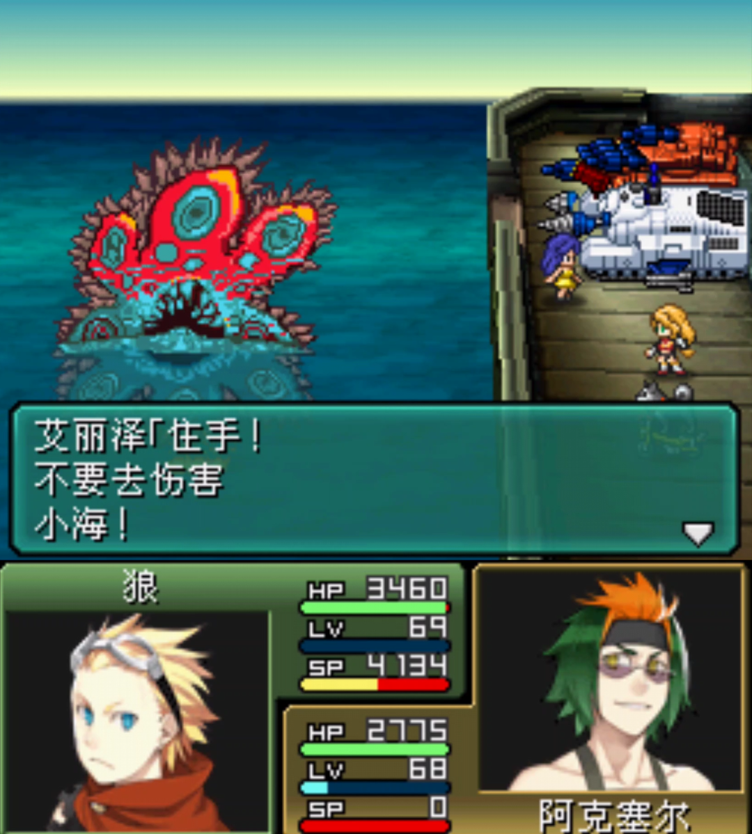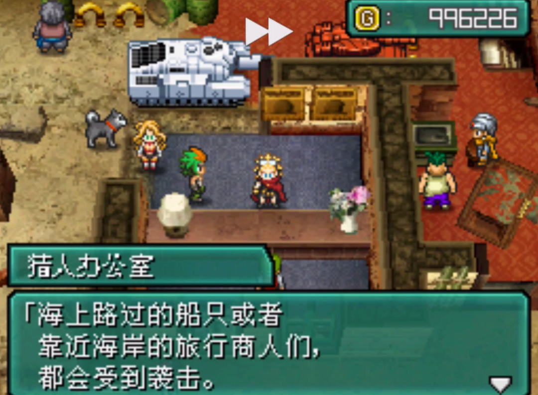 NDS上的《重装机兵2重制版》与GBA上的《重装机兵2改》不同,轮船是没办法在摩洛波克直接靠岸的,所以我们还得绕一大圈路返回摩洛波克对岸的大陆进行登船。