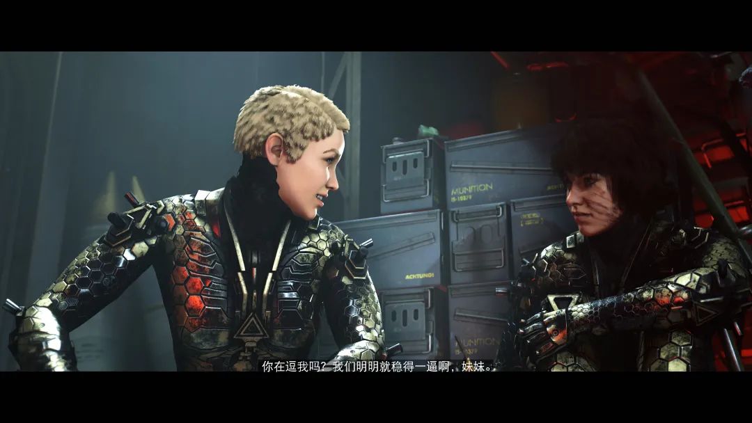 角色层面,两个角色的设计还算有意思,尽管是初上战场的新兵却全程透露出那种不吝的朋克范儿,而且不失小孩子的天性(只有在电梯里才能见到),反差萌还是有意思的。