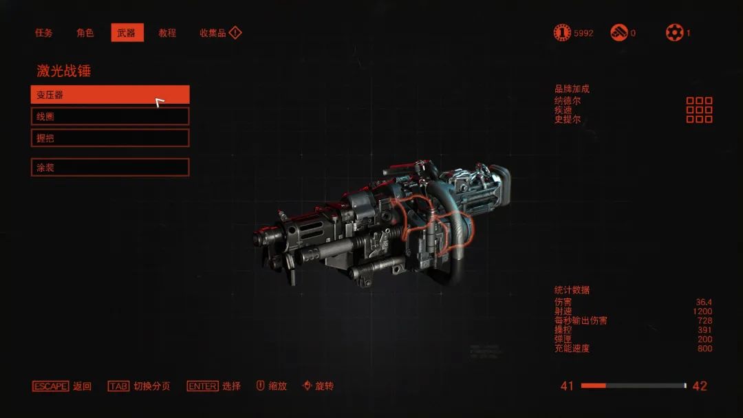 这里小小提醒一下各位玩家们,大型敌人掉落的重型枪械(战锤),在经过一定技能学习后才能收入囊中并且改装,不然只能打光子弹扔掉或是干脆捡不了,之前也是不能随身携带的。