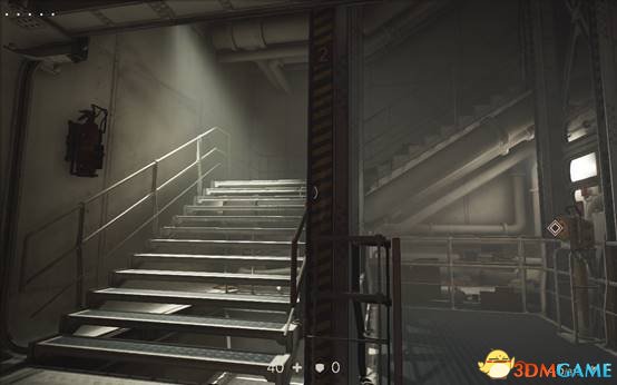 通过一个管道,来到这里(也就是楼梯的后边),这里机甲过不来,远程武器又会被墙挡住。是一个绝佳的好位置。