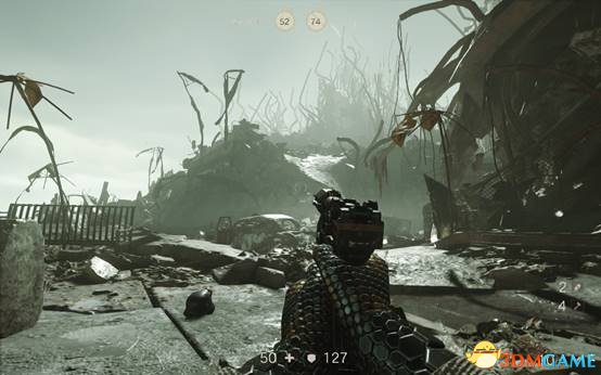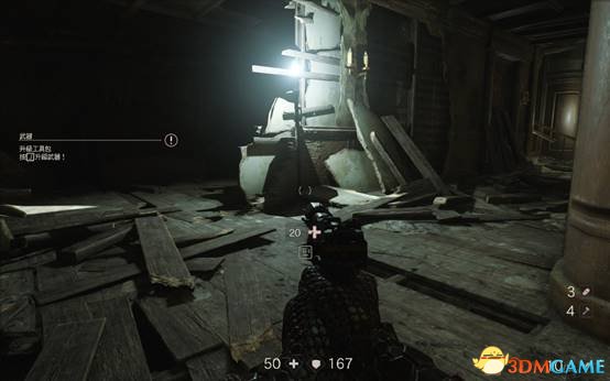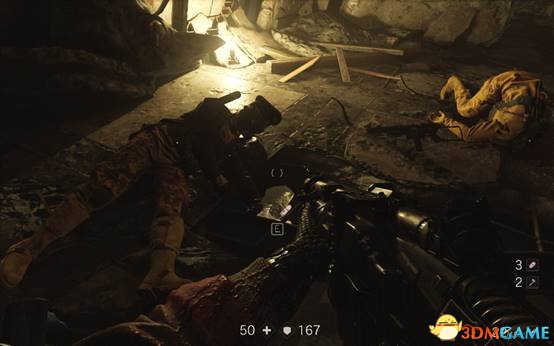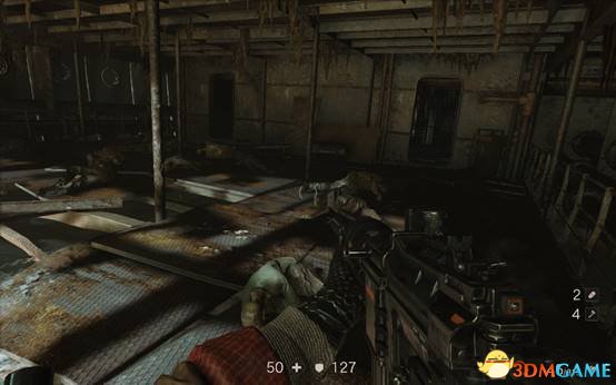 去过场动画的伤病处,按使用键互动得到一把冲锋枪。