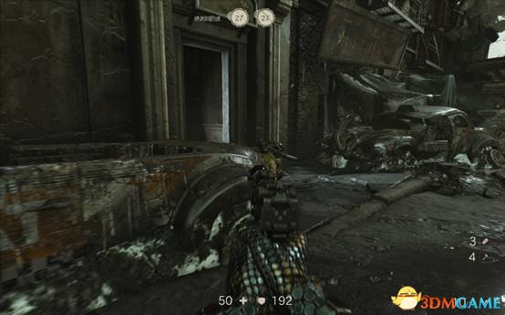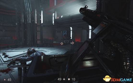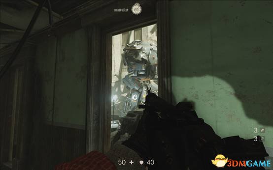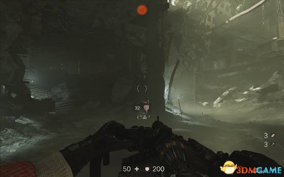 跟着目标指示按下按钮,会有3个重甲兵出现,在第二个重甲兵出现之前最好把第一个消灭掉,使用双持射钉枪能有效地对付重甲兵。
