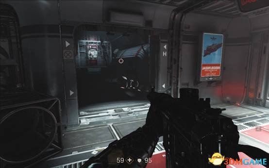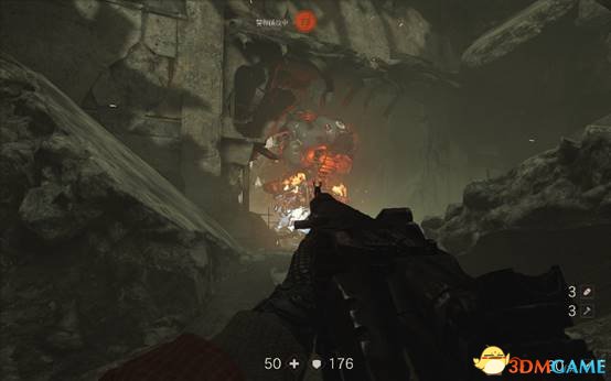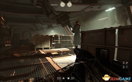 按原路返回,遇到一个拿着激光炮的重甲纳粹,利用障碍物消灭掉。