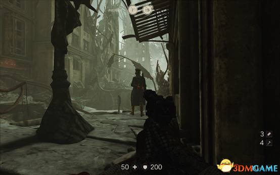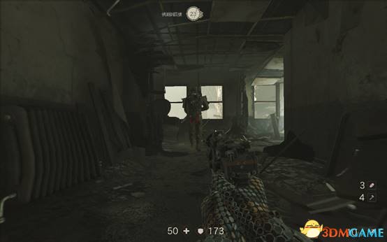 这里有一处微波强,两个德军试图通过微波墙进攻主角的时候,被微波墙撕成了碎片。
