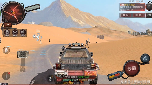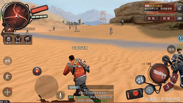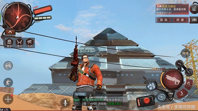 我们直接看游戏的操作方式吧,这款游戏的UI设计跟很多游戏的都会有一些不一样,虽然左下角依旧分布了控制位移的虚拟摇杆,但是可以发现一般情况下是隐藏掉的,并且也是不固定的一个虚拟摇杆,在操作时候可能会有一些不方便。同时在左侧也分布了培养系统聚合页面的入口,还有下蹲射击和乘车的操作按键,这跟很多游戏的设计思路都是不一样的,我不能说这样的设计方式到底是好还是坏,最起码我认为它还有可以提升的地方。