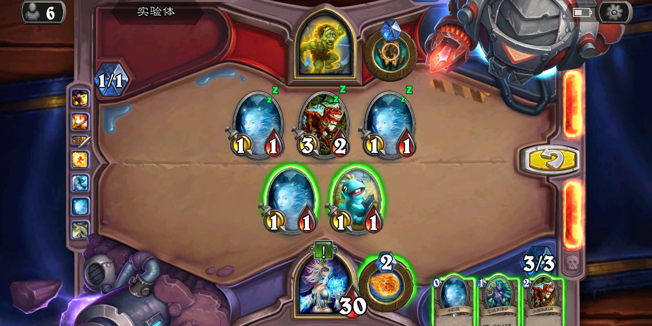 鱼人+火冲换迅猛龙,出小精灵!注意别上别的随从!