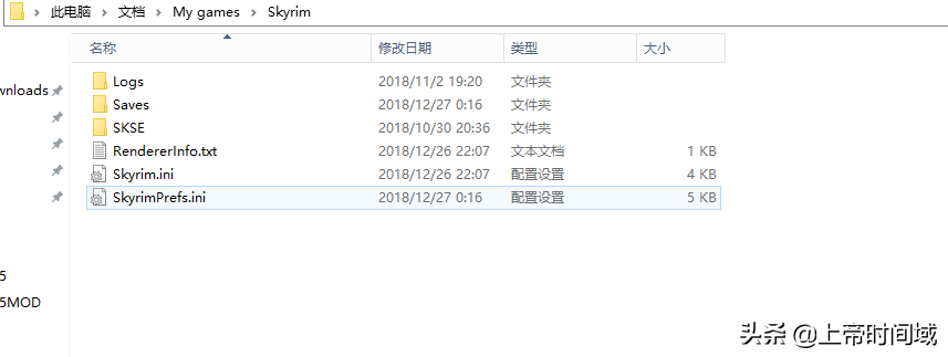首先,按照以下操作打开到这个界面,找到SkyrimPrefs.ini(我相信你肯定能找到这个文件夹,这个文件夹实际上就是管理《上古卷轴5》存档的地方)