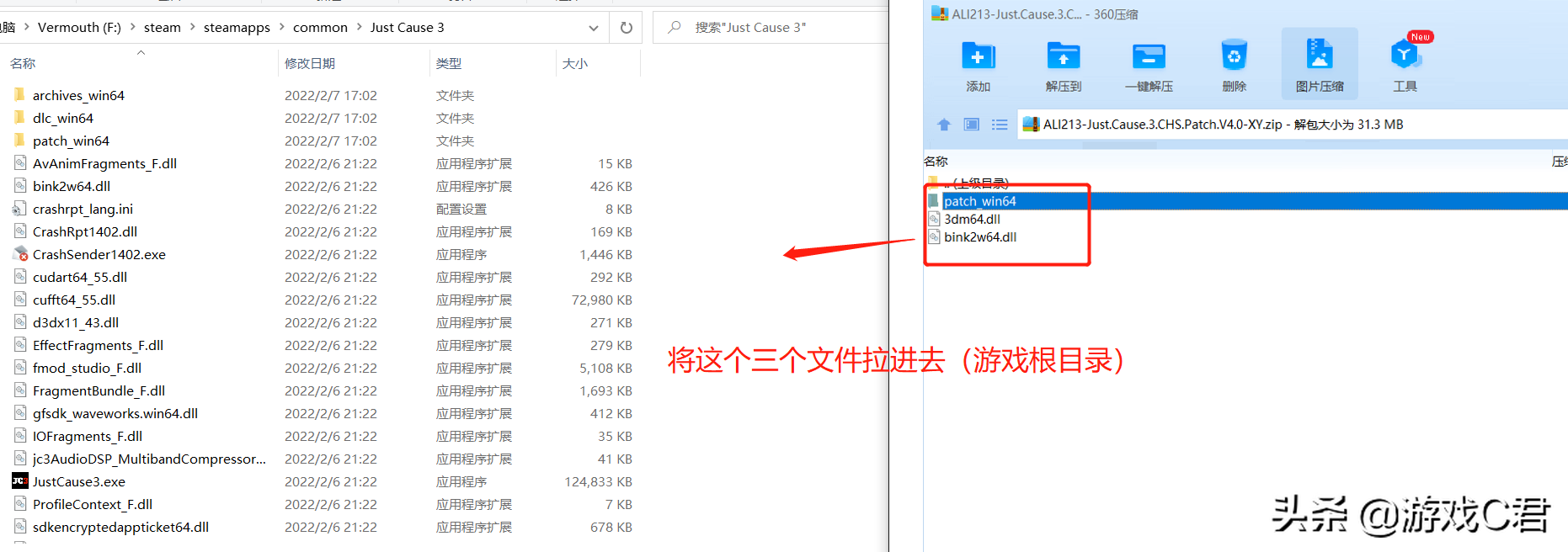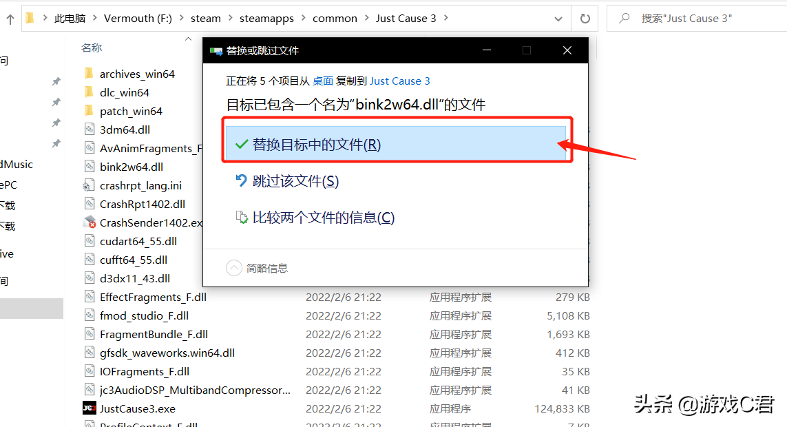 将“第一步”解压的汉化补丁文件放入游戏根目录。