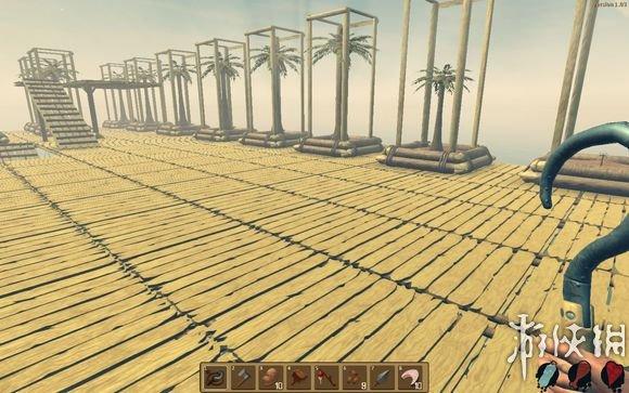 5.后期有不同路线,反正饿不死渴不死了,怎么玩都行,不过我建议多种树,后期海里漂浮物越来越少,最后就没有东西了,这时获取木头的唯一途径就是种树,否则就无法继续扩建了,砍树可以获得大量树叶和木头,椰子也是好东西,同时补饥饿度和水分,多种些就不用煮水了;