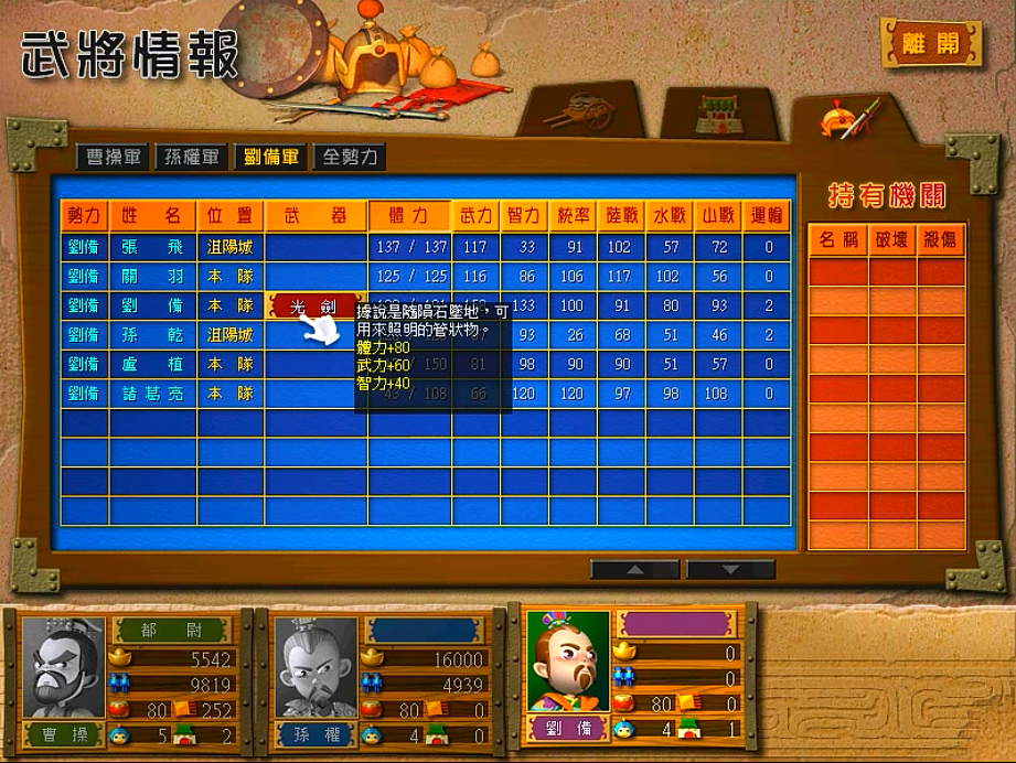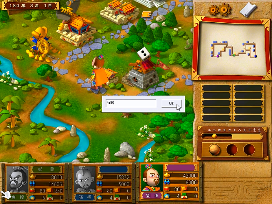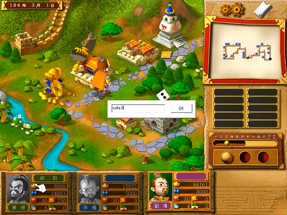 按照上面加钱加兵那样,输入ru4a.6,后面再加上锦囊编号1-47,就可以得到和编号相对应的锦囊。这可以用作无限雇用将领,瞒天过海和暗度陈仓来回使用。