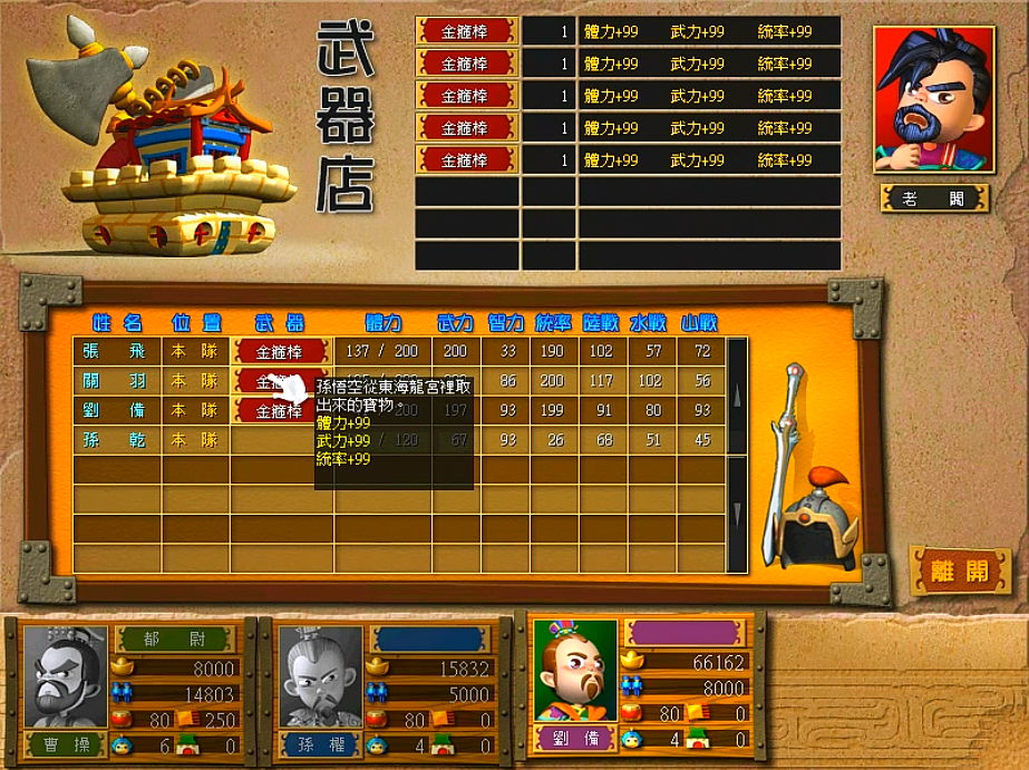 金箍棒属性是体力99,武力99,统率99,就单单这属性就比一些酱油武将的高了。