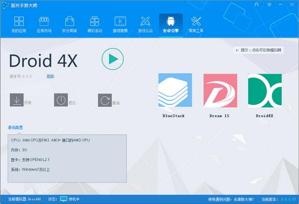 多模拟器共存一直是蓝光手游大师最强大的功能之一,每种模拟器都有自己的优缺点,对游戏的兼容性也都不同,多模拟器很好的解决了单模拟器无法运行个别游戏的尴尬现象,游戏不能玩?换模拟器试试吧!一键点击即可下载安装模拟器,轻松实现无缝切换模拟器,安卓游戏无法运行,快来试试蓝光手游大师吧!