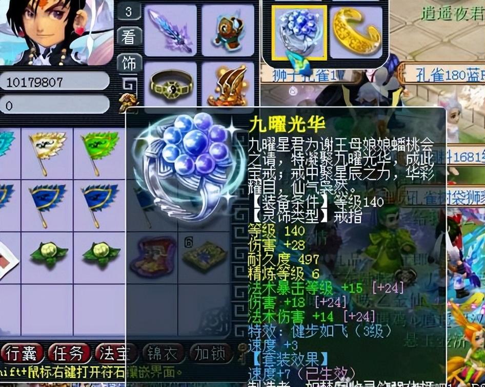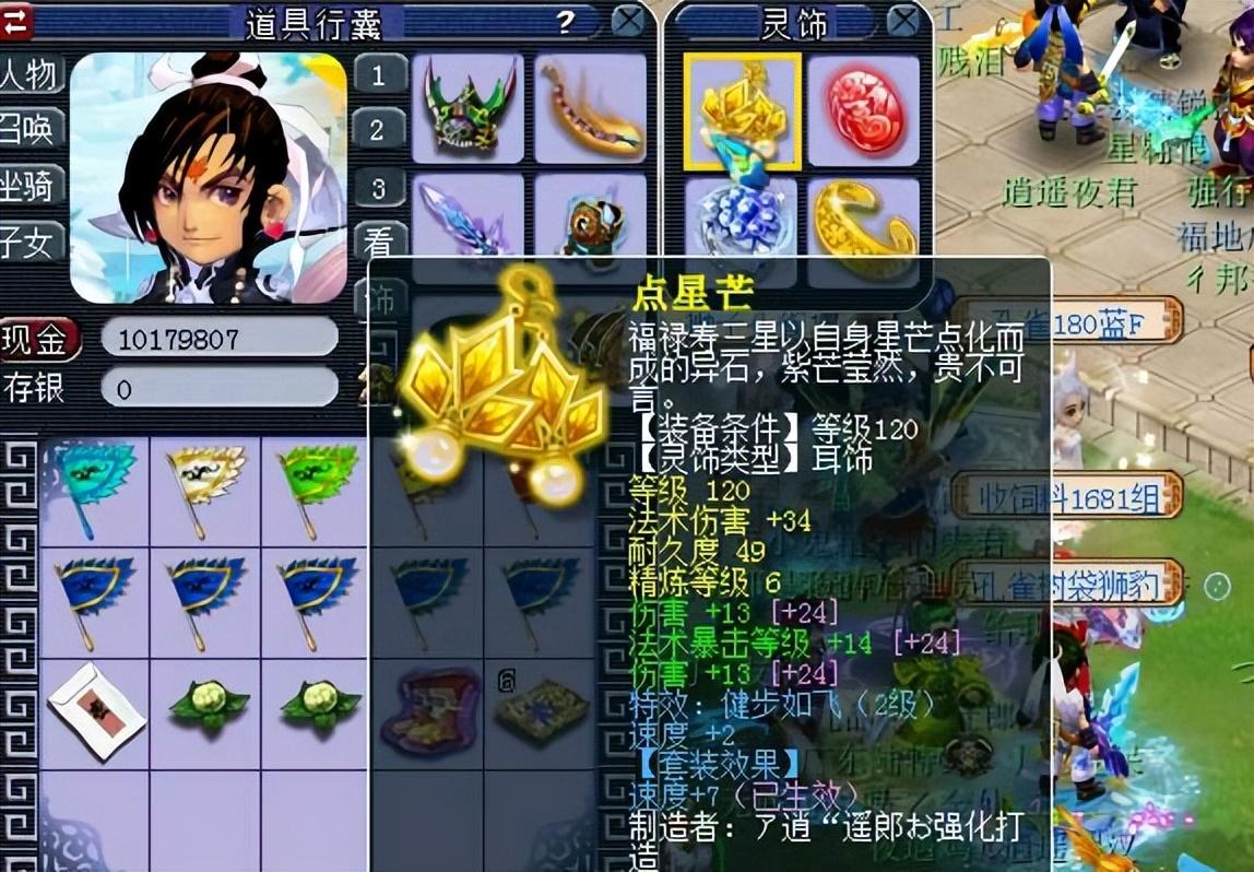 然后就是灵饰装备配置。耳环、戒指带的是法爆、物理以及法伤,这些都能兼顾到,双修大唐挺实用。这里以装备为主,比如你的武器很好,伤害很高,而你的法伤并不高,可以考虑灵饰多一条法伤。反而言之你项链很好,那么灵饰可以多一条物伤,这里要说的是法爆,最次也要带一条。因为一条6的大概4%的几率,那么5个单位就20%,一回合有20%的几率触发法爆。