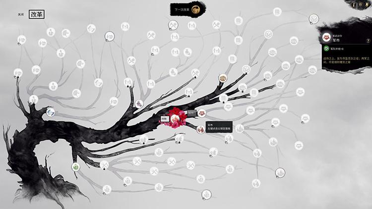 比如说骁勇善战的夏侯惇为火属性,他拥有高超的本能属性,因此擅长战斗以及军事相关的管理,而它在募集军队方面也能获得更大的加成。与之相对的,水属性代表了智谋见长的策士型角色,它们更擅长商业和算计,因此它们可以给军队带来补给。巧妙地是,策士角色能率领的远程弓手上正好克制火属性特色的冲击骑兵,而在政治上,水属性所代表的贸易商业也可以削减火属性所代表的战争与军事需求。某种意义上,五行将本作内政管理部分的相生相克串联在一起,而这种系统在本作中的方方面面也几乎达到了逻辑自洽,让人赞叹。除此之外,玩家还发布改革政令,来按照自己喜好的流派游玩,让选择变的更为多样。