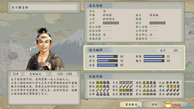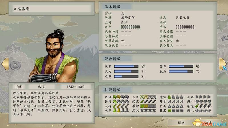重要技能:“武艺”、“忍术”、“水军”。