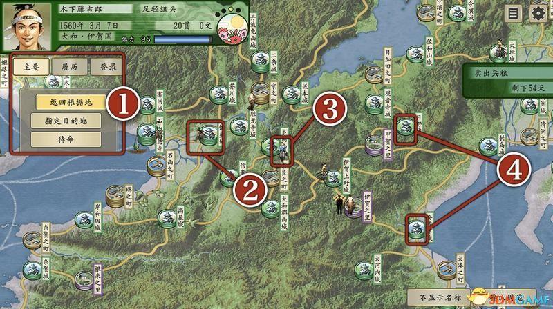 红④:据点,有城、町、忍之里、水军砦4种“据点”,功能大同小异。