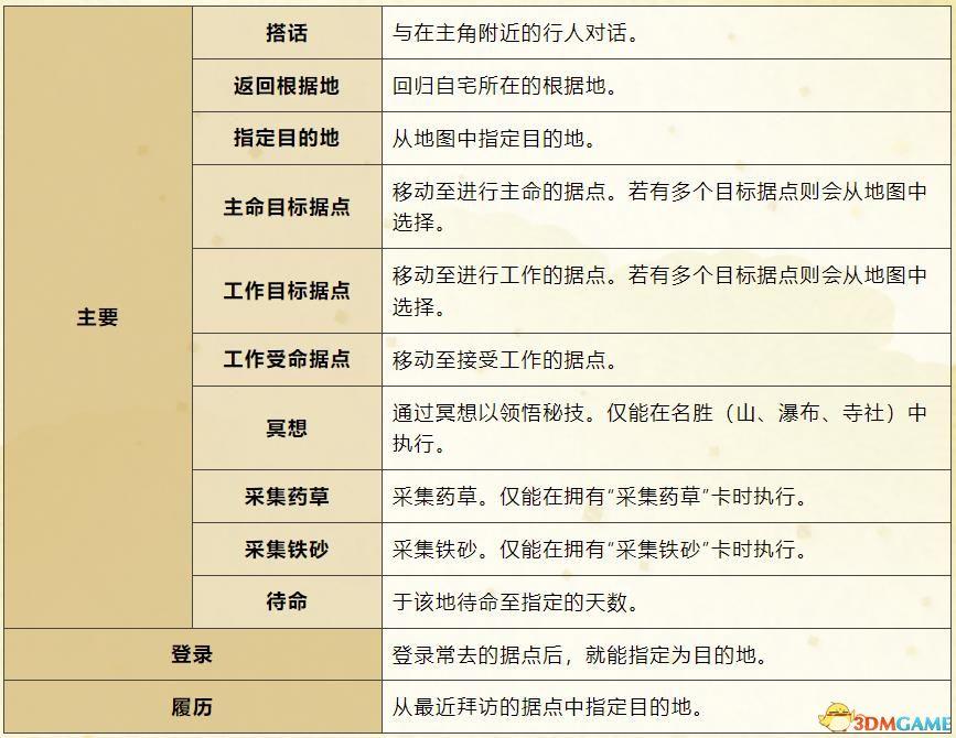 为了达成主命(求道系则是达成自我修炼的目标),你需要在全国各地活动。
