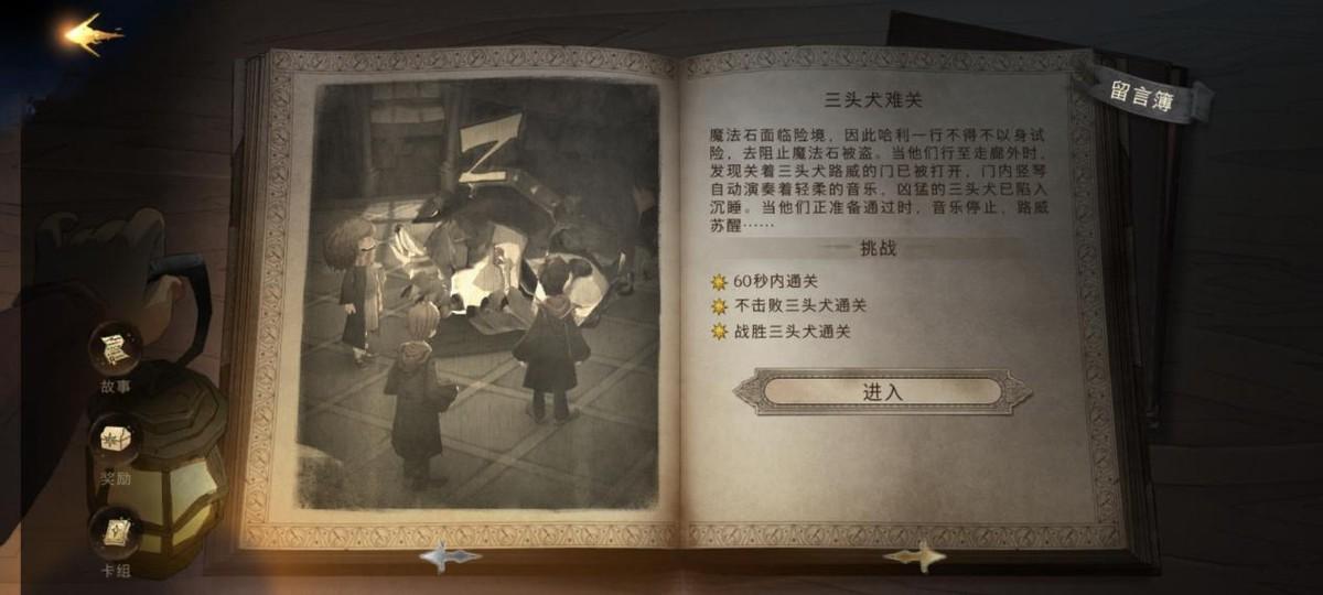 在魔法石这一关,哈利在两段对话有着不同的选项=,玩家们一定不能相信反派的鬼话,要选择保护魔法石,就能获得一个伤害减免+30%的给力BUFF。而且想三星通关的话必须不能使用伙伴卡。另一关则是由赫敏与伏地魔单打独斗,会比上一关难度稍高,而且要三星同样不能使用伙伴卡。