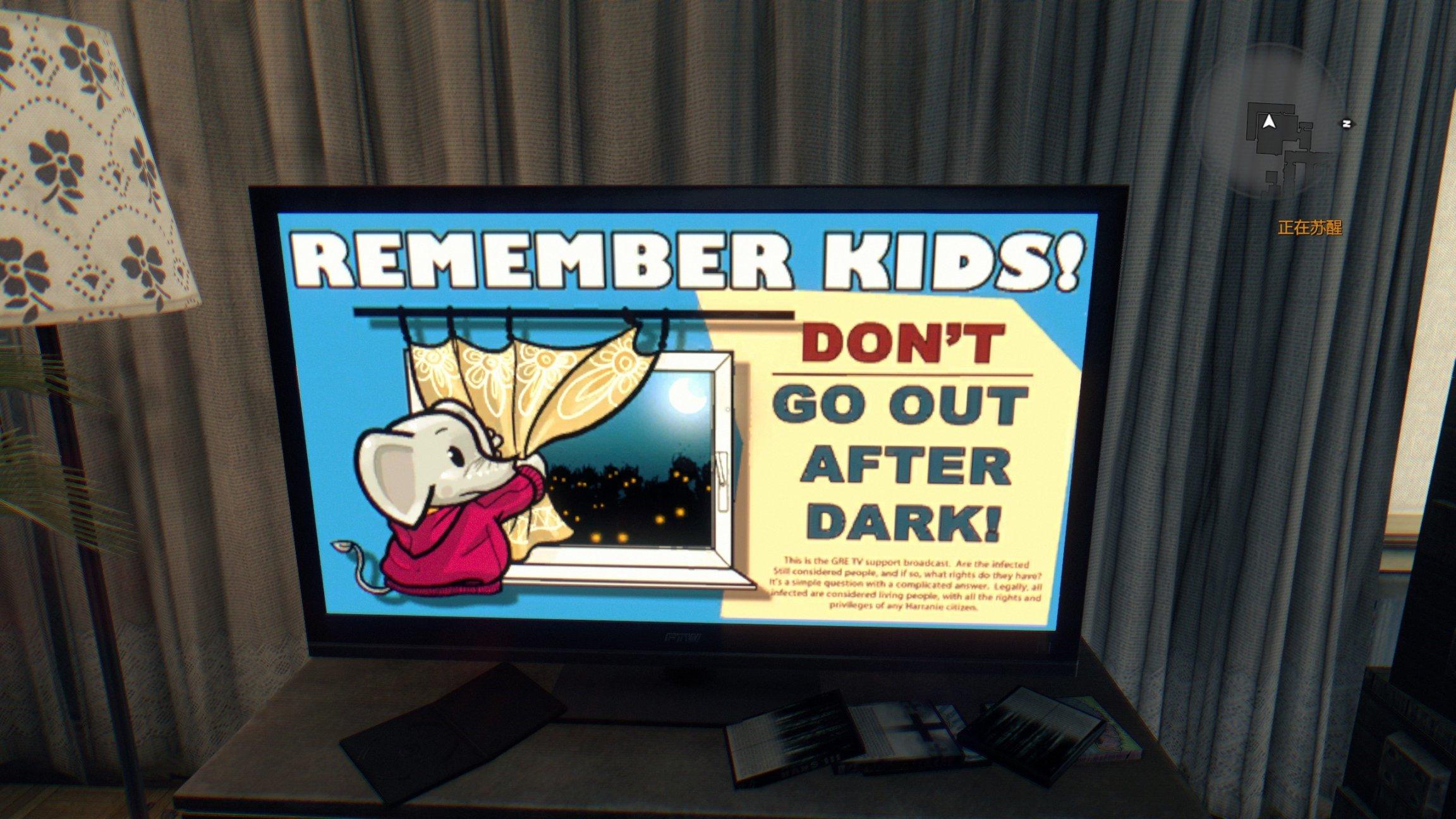 比如,你可以在塔楼领导者办公室里的电视机上看到哈兰市为市民投放的关于丧尸的卡通科普小广告(当然,这台电视机在后续剧情里应该是让布雷肯砸坏了)。
