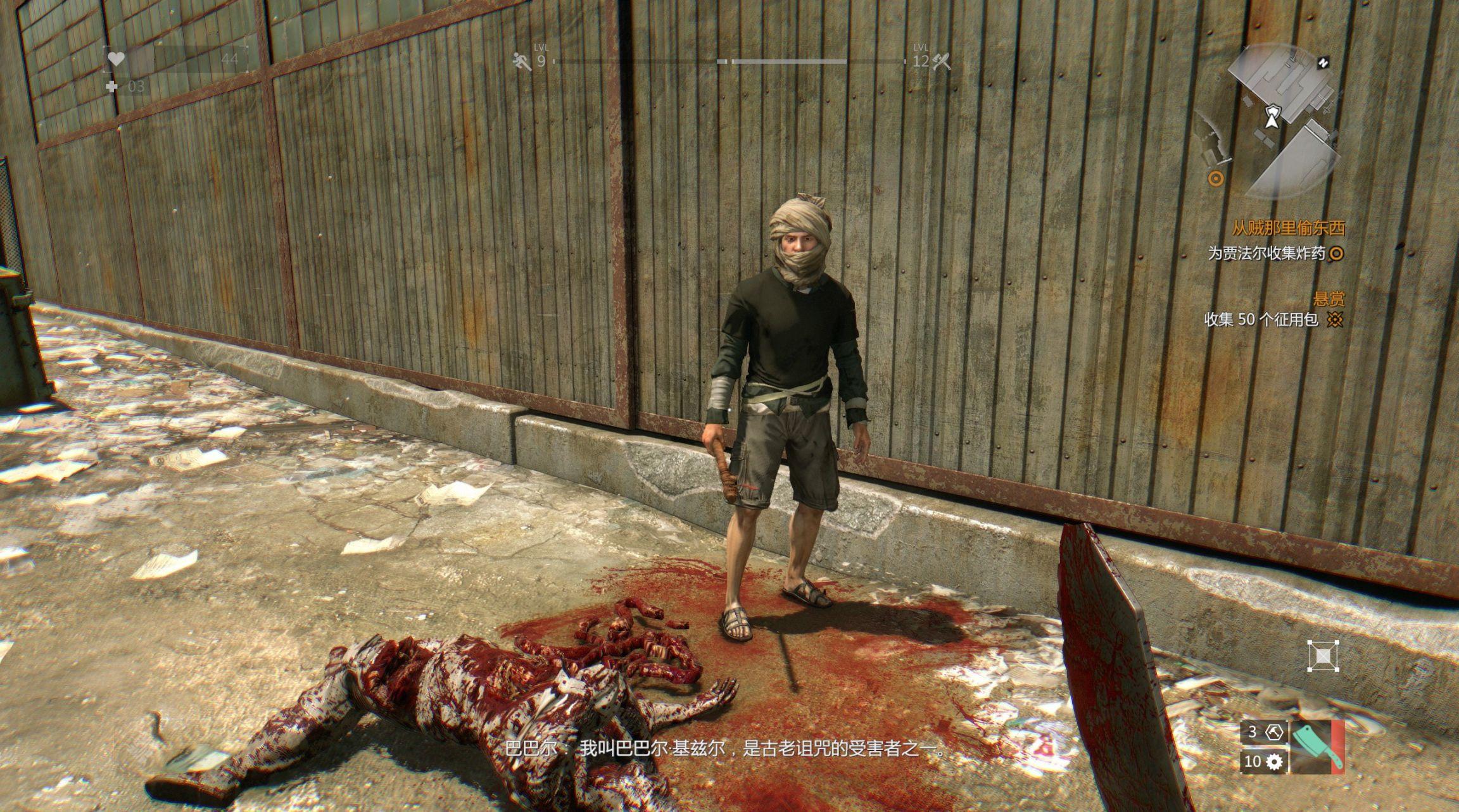 除了武器系统,在哈兰的大街小巷还有许多幸存者,玩家可以随时在地图上遇到他们,有时你需要帮助他们解决丧尸的袭击,有时你需要从赖斯的手下那里救出他们,在你帮助完他们时,他们会给予你一些随机的奖励,在你收取了奖励之后,他们会在AI的操控下跑开,攻击见到的所有丧尸。